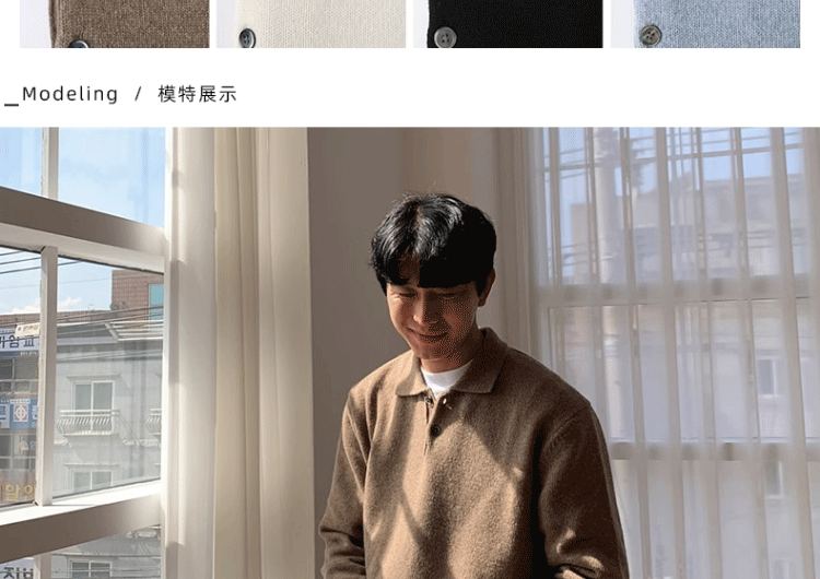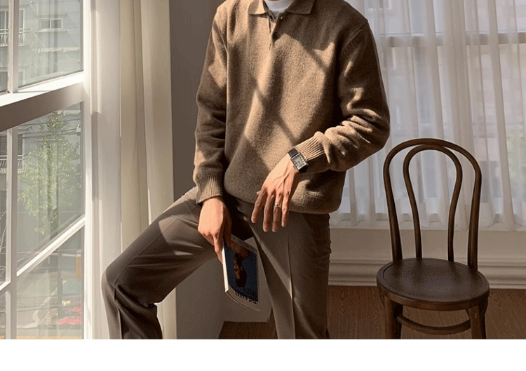 가을, 겨울 새로운 폴로 셔츠 옷깃 스웨터 남성 영국 비즈니스 솔리드 컬러 재킷 유행 대외 무역 국경 간 도매스토어 가기