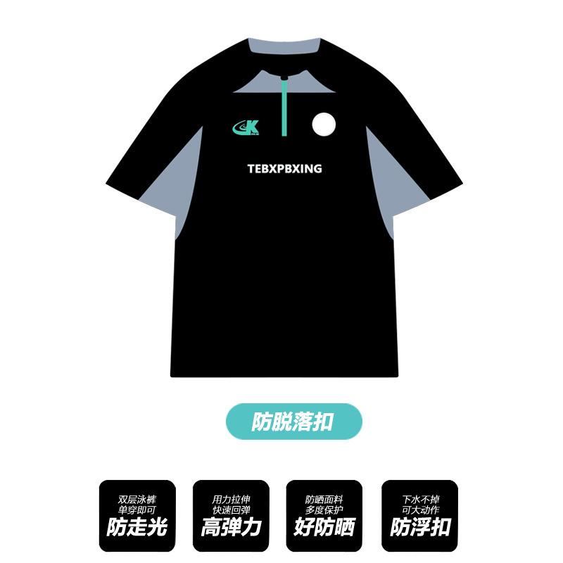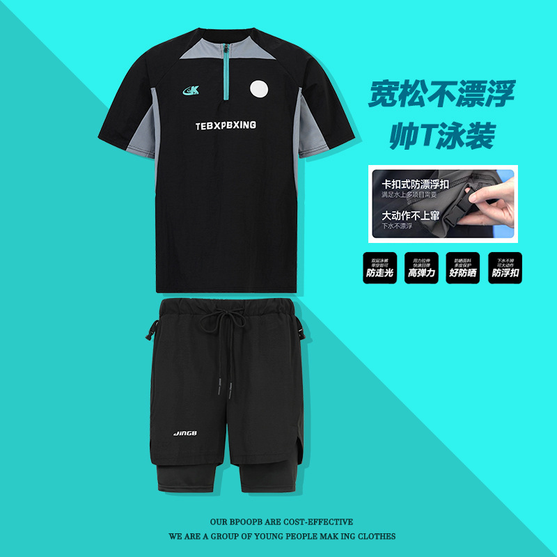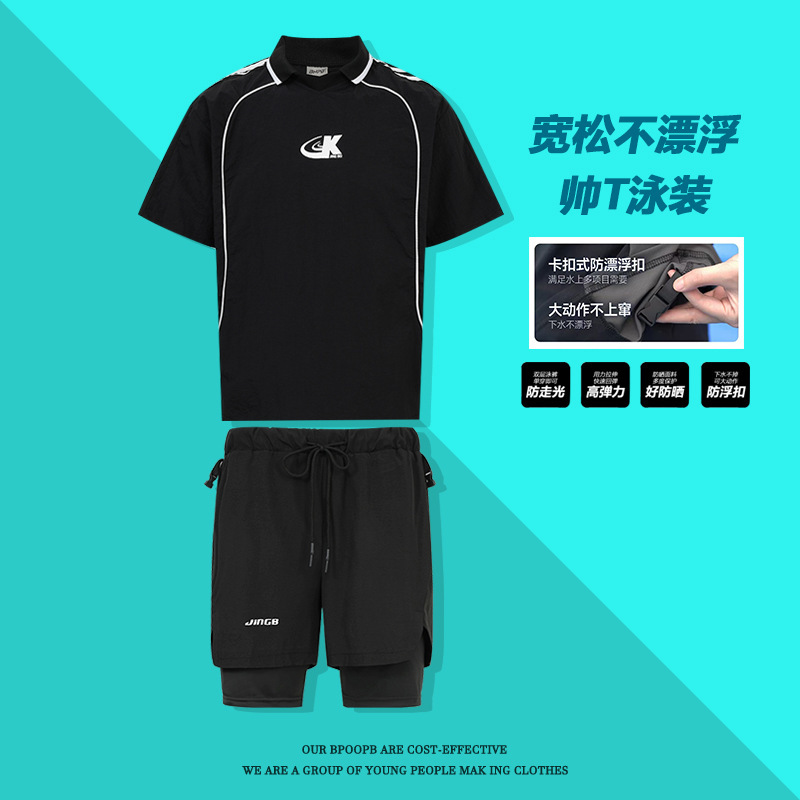 자외선 차단 및 부풀어오름 방지 스플릿 수영복 세트, 스포츠 뷔스티에, 뉴트럴 스타일 수영복 장비, 루즈한 풀세트, 반팔, 속건성