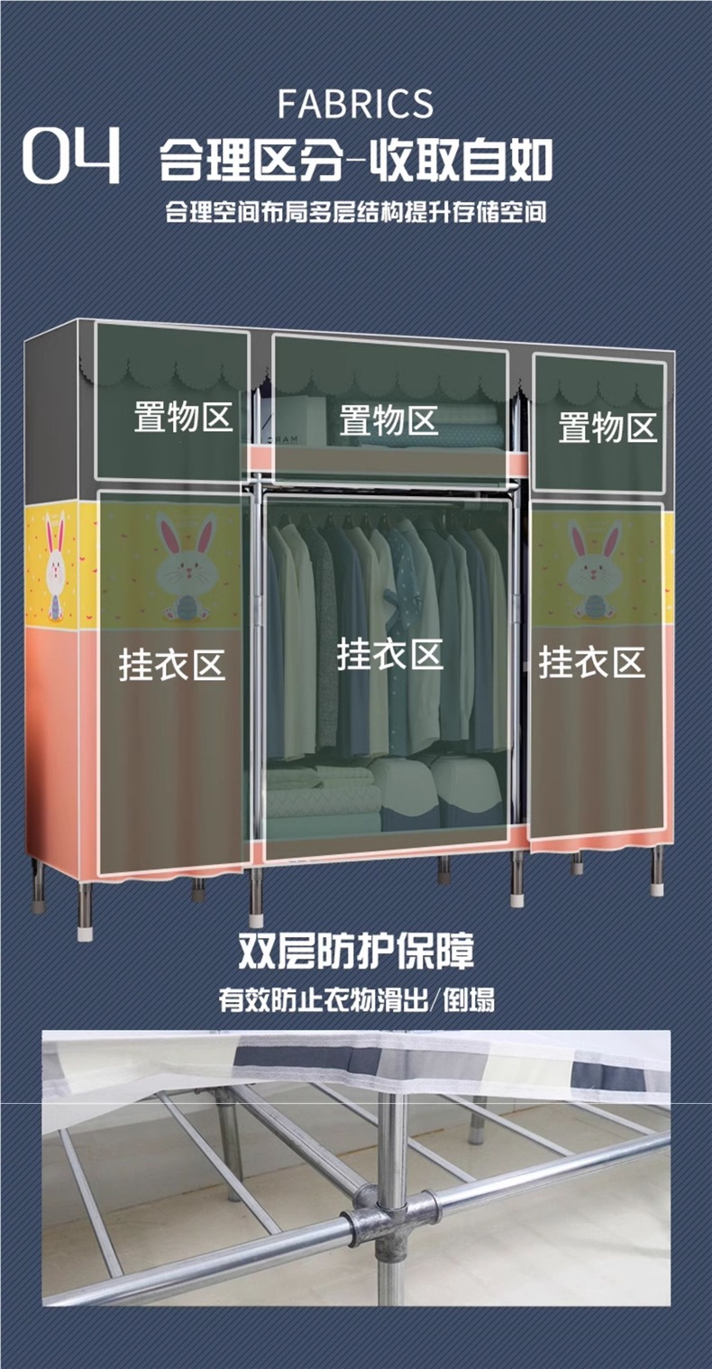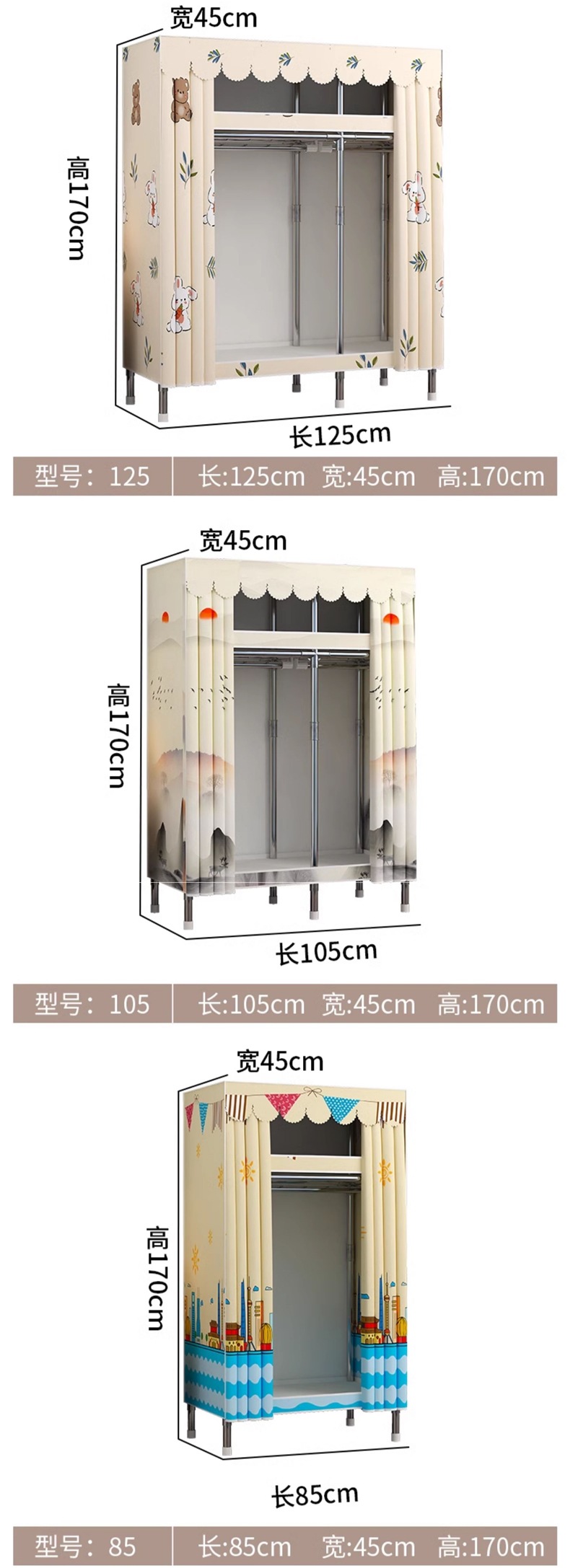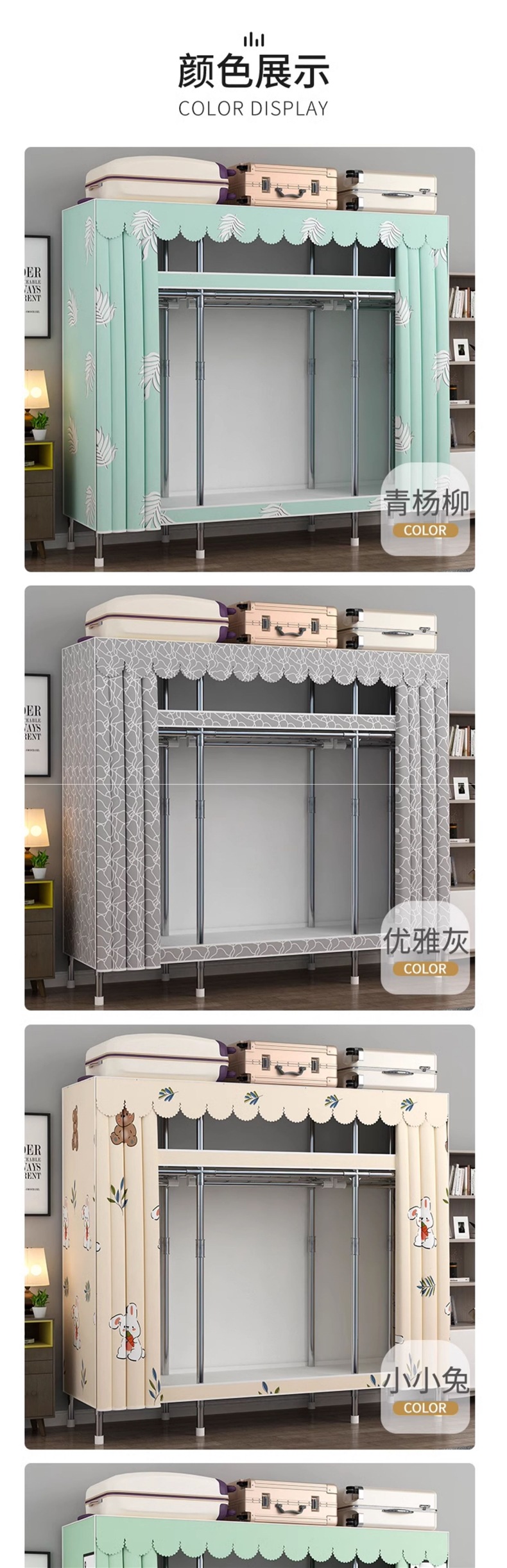 가정용 침실 임대용 싱글 옷장 간단한 천 옷장 강철 파이프 두꺼운 경제적 인 저장 공간