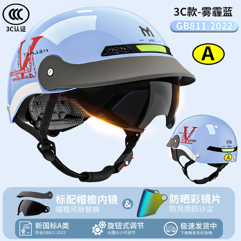 새로운 사계절 통기성 경량 헬멧 Huanqi 전기 오토바이 헬멧 남성과 여성 여름 반 헬멧 새로운 국가 표준