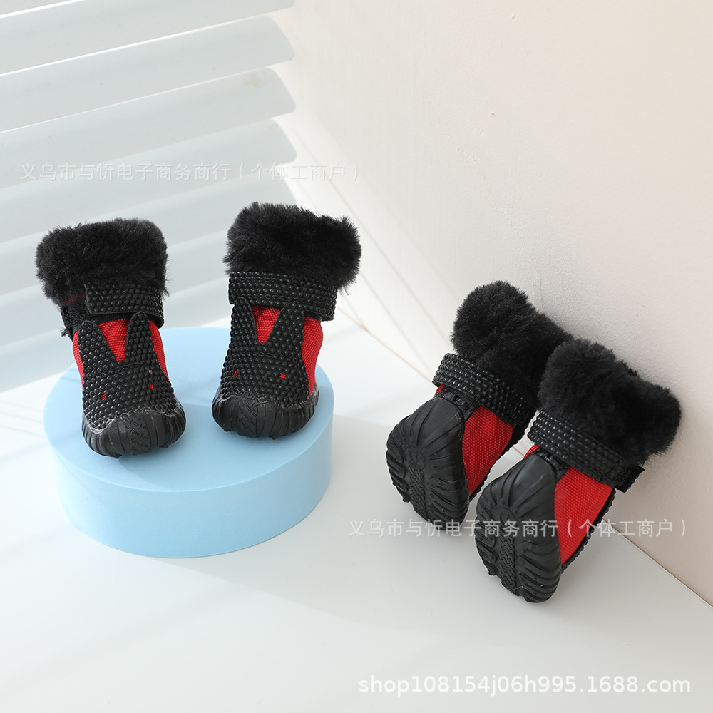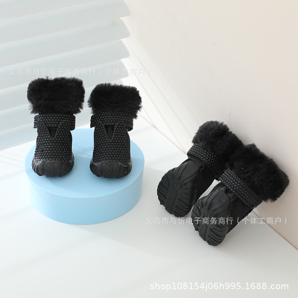 애완견 신발, 소형견 두꺼운 스노우 부츠, 부드럽고 미끄럼 방지, 따뜻한 면 신발, 더러운 방지 벨크로 발 커버