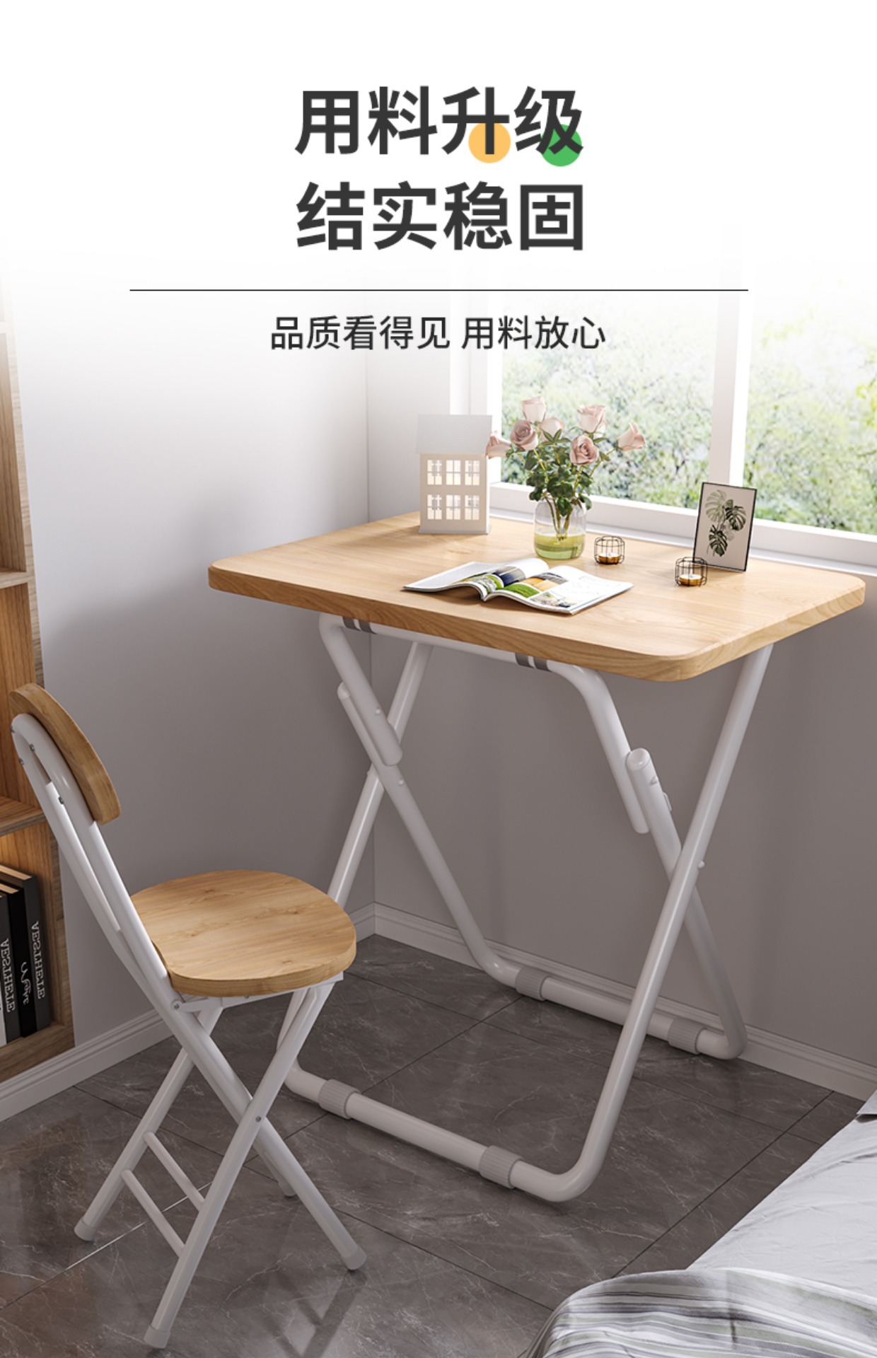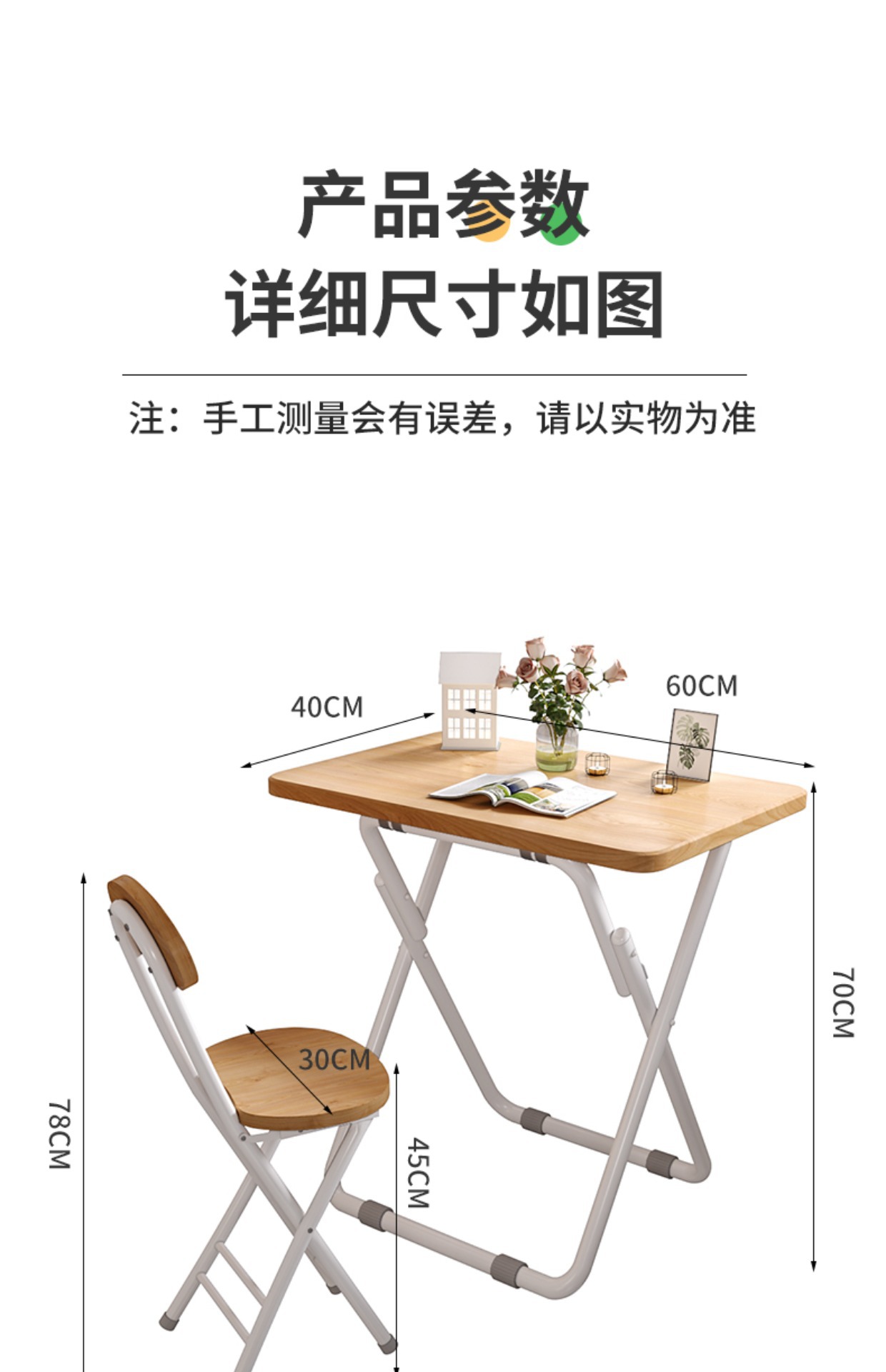 간이접이식 테이블 기숙사 책상 학습 테이블과 의자 싱글 식탁 식사용 작은 테이블 컴퓨터 테이블 직사각형 L&스토어 가기