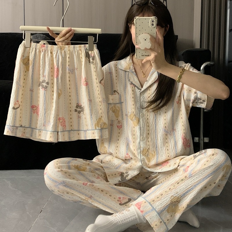 • (가슴패드 없음) [윤두면] 3종세트 : 그레이 체크 브라운 베어 (반팔+반바지+바지)