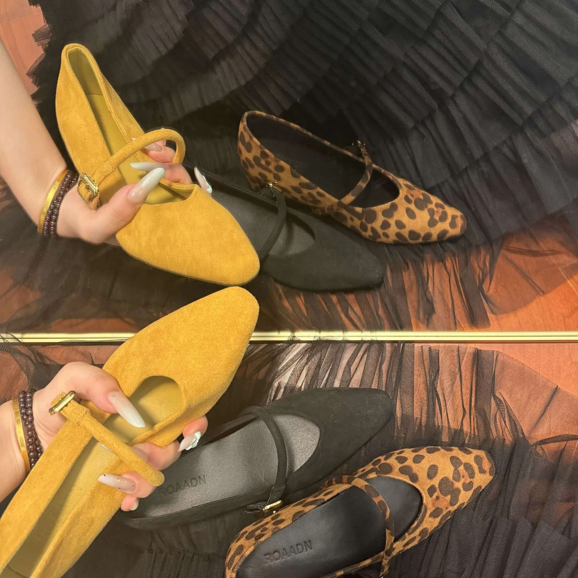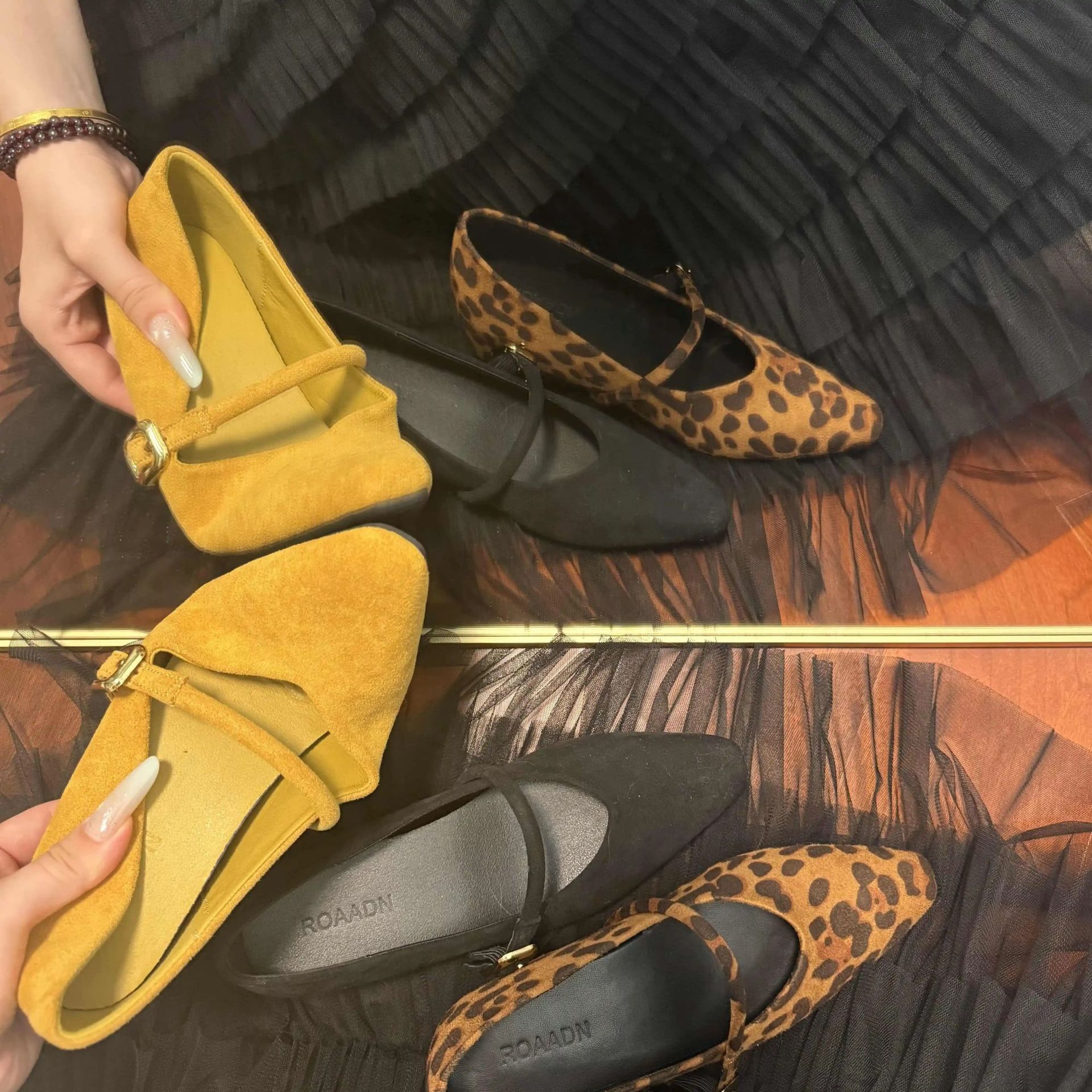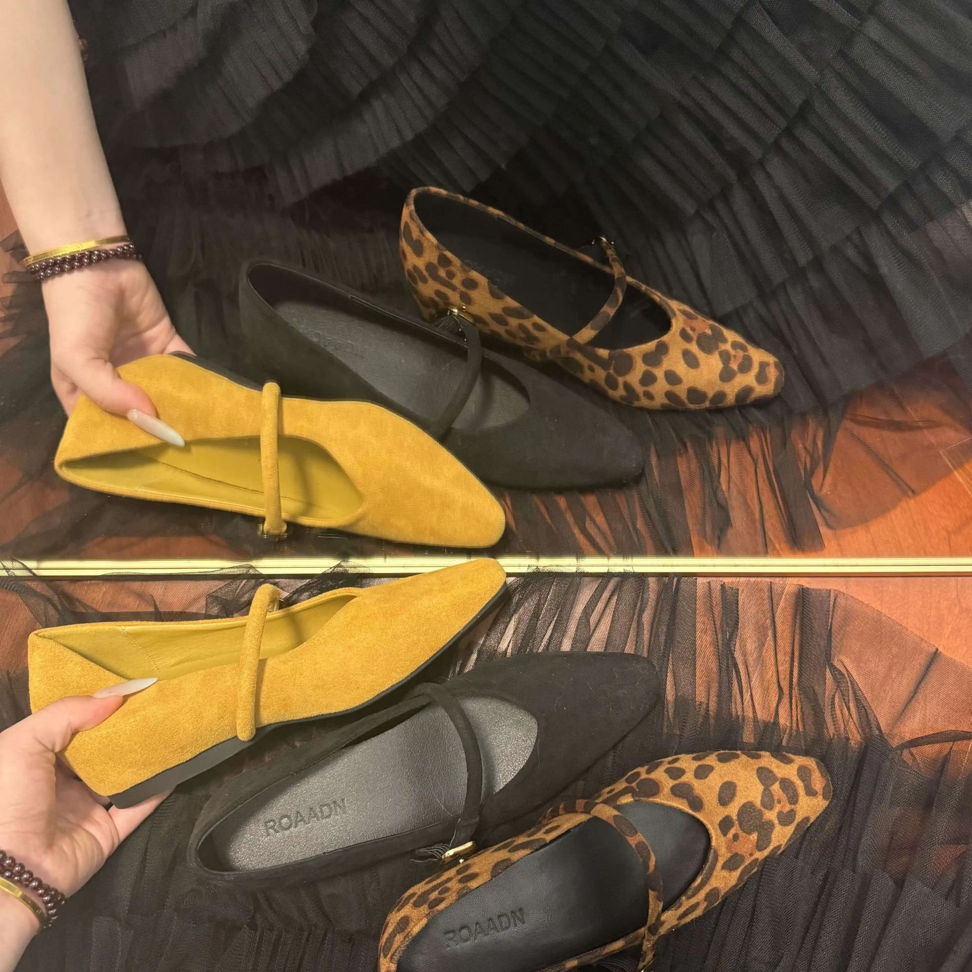 유럽 여성 신발 2024 가을 새로운 부드러운 가죽 부드러운 밑창 스퀘어 토 얕은 입 벨크로 스트랩 메리 제인 신발스토어 가기