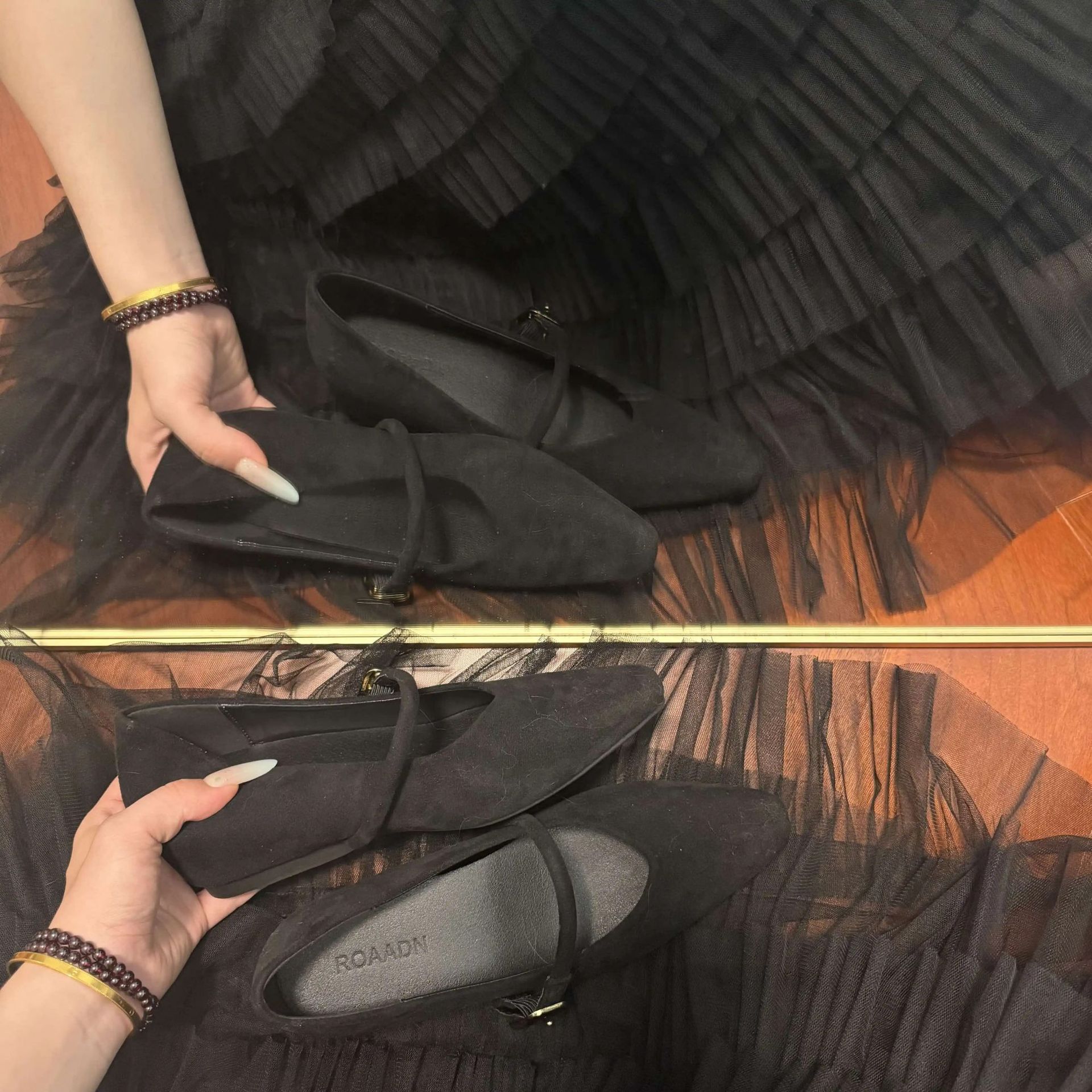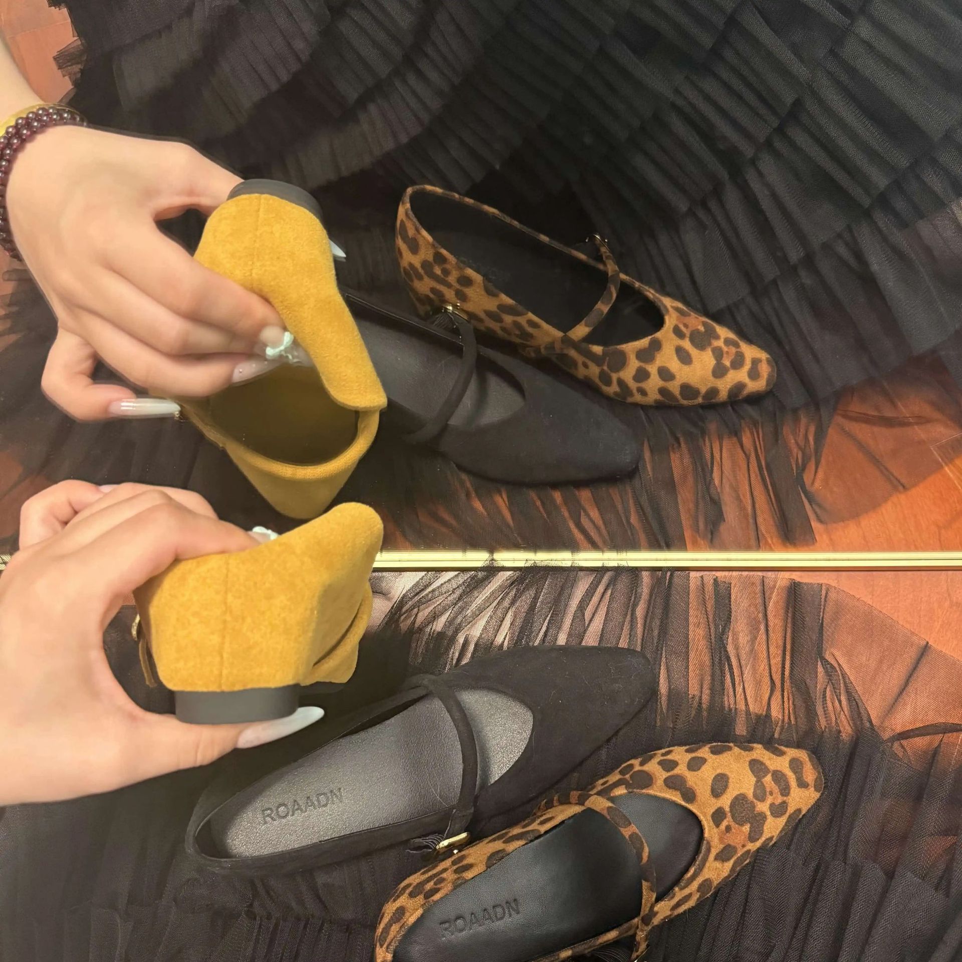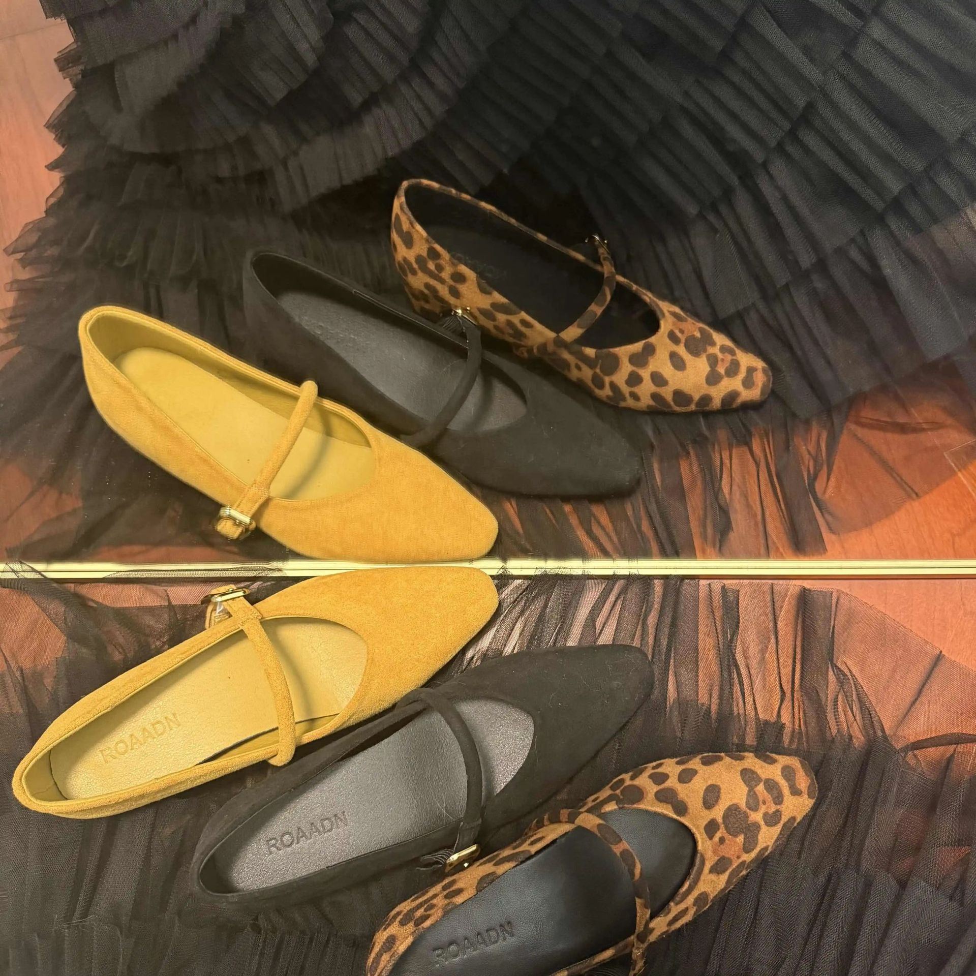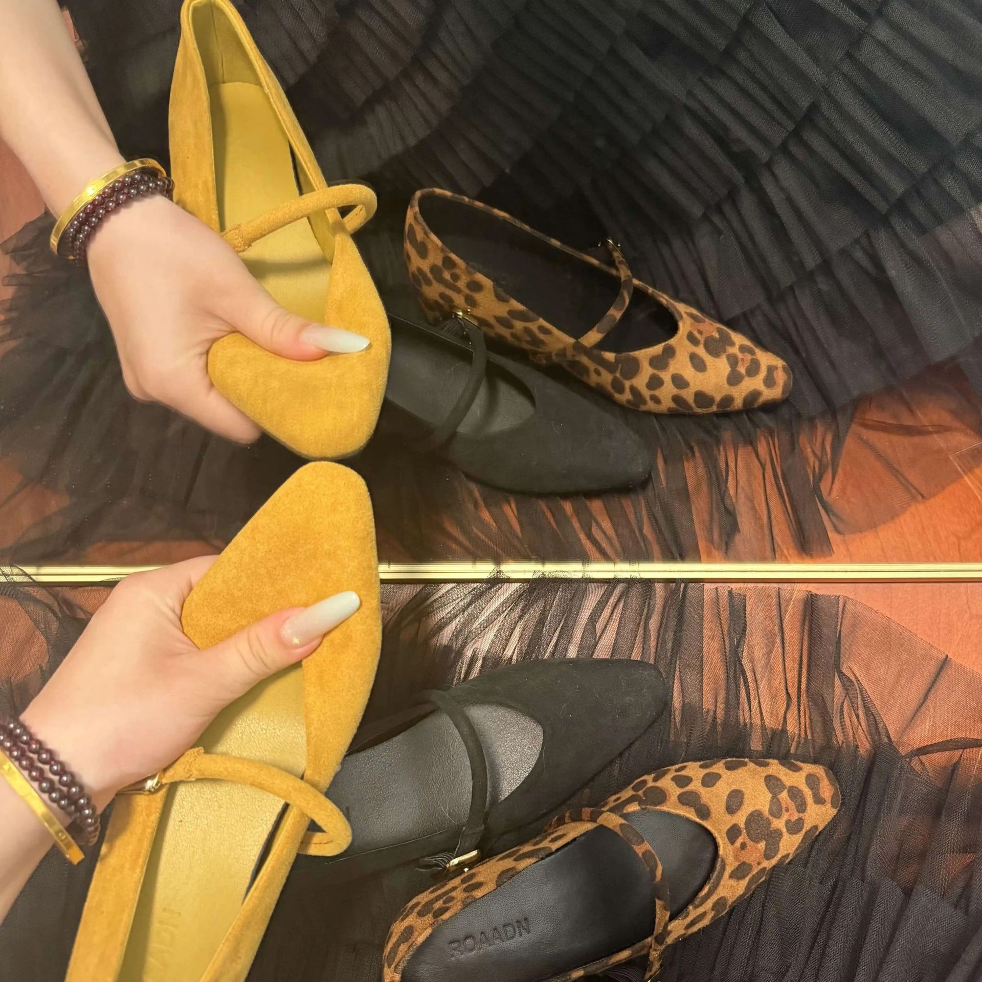 유럽 여성 신발 2024 가을 새로운 부드러운 가죽 부드러운 밑창 스퀘어 토 얕은 입 벨크로 스트랩 메리 제인 신발스토어 가기