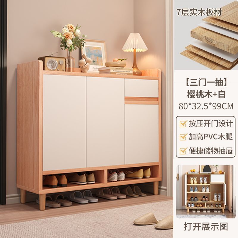 집 입구용 단단한 나무 신발장 2025 새로운 스타일의 입구 복도 보관 캐비닛 통합 다층 간단한 보관 작은 신발장
