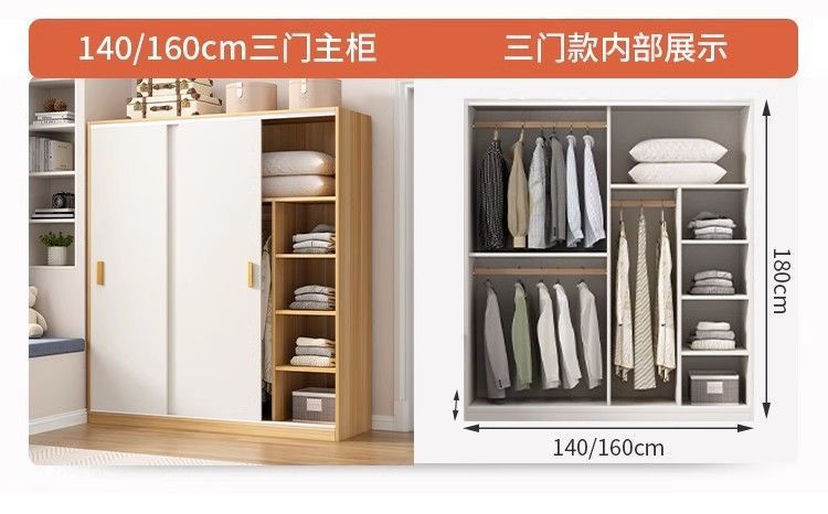 가정용 침실 바닥 옷장, 경제적이고 내구성이 뛰어난 슬라이딩 도어, 현대적이고 단순한 임대 주택 옷장, 작은 아파트, 조립 용이스토어 가기