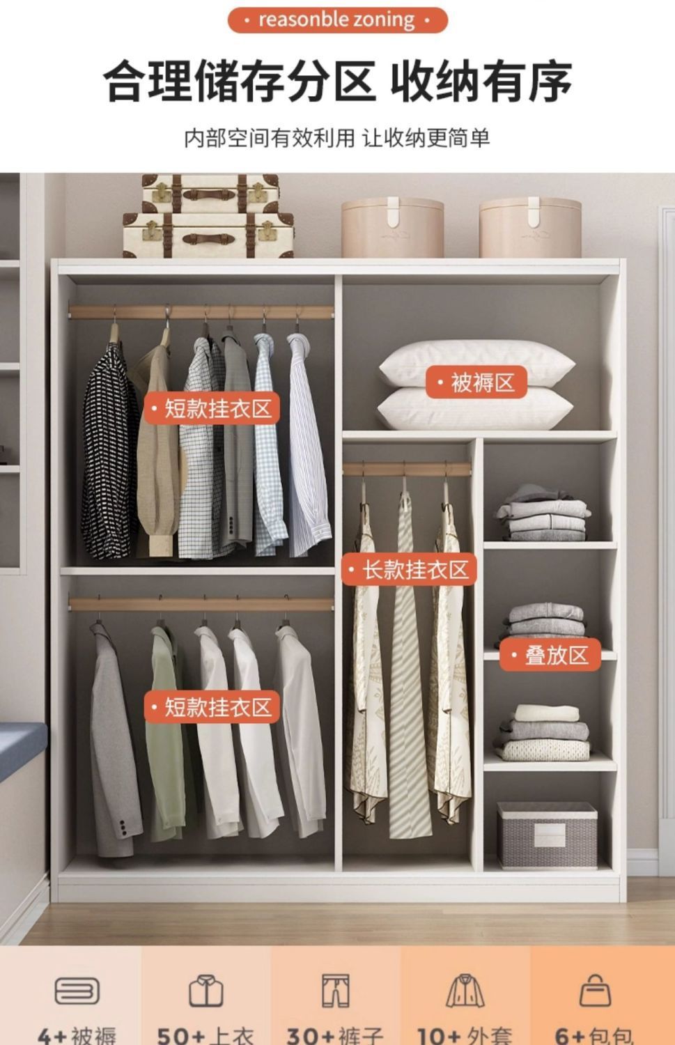 가정용 침실 바닥 옷장, 경제적이고 내구성이 뛰어난 슬라이딩 도어, 현대적이고 단순한 임대 주택 옷장, 작은 아파트, 조립 용이