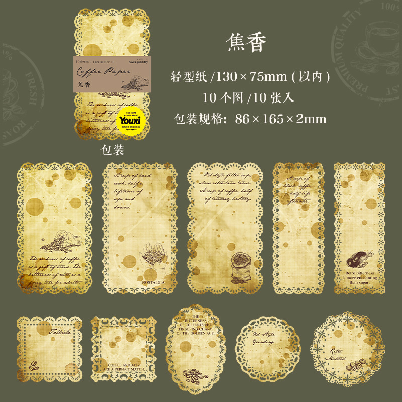 커피 향기 시리즈 아름다운 하루 소재 종이 레이스 중공 핸드북 장식 베이스 소재 10장 6가지 스타일스토어 가기
