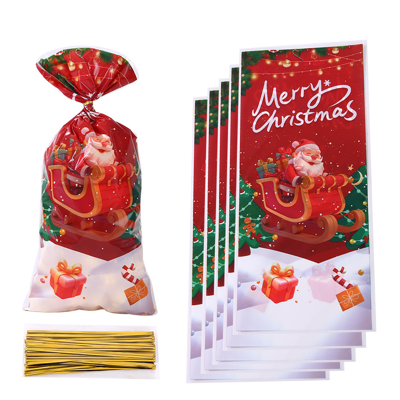 크리스마스 사탕 포장 가방, 선물 가방, 사탕을 얻기 위한 기념품 가방, DIY 베이킹 식품 가방, 타이 실크 플랫 가방