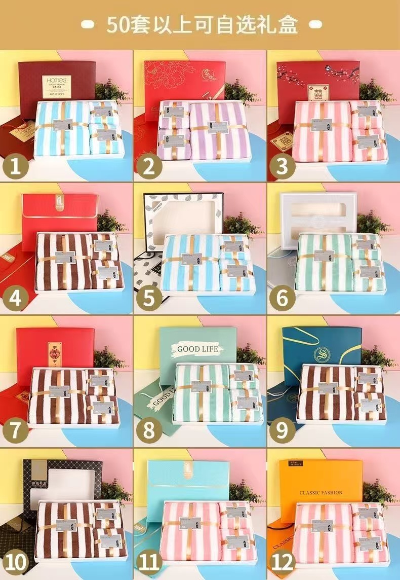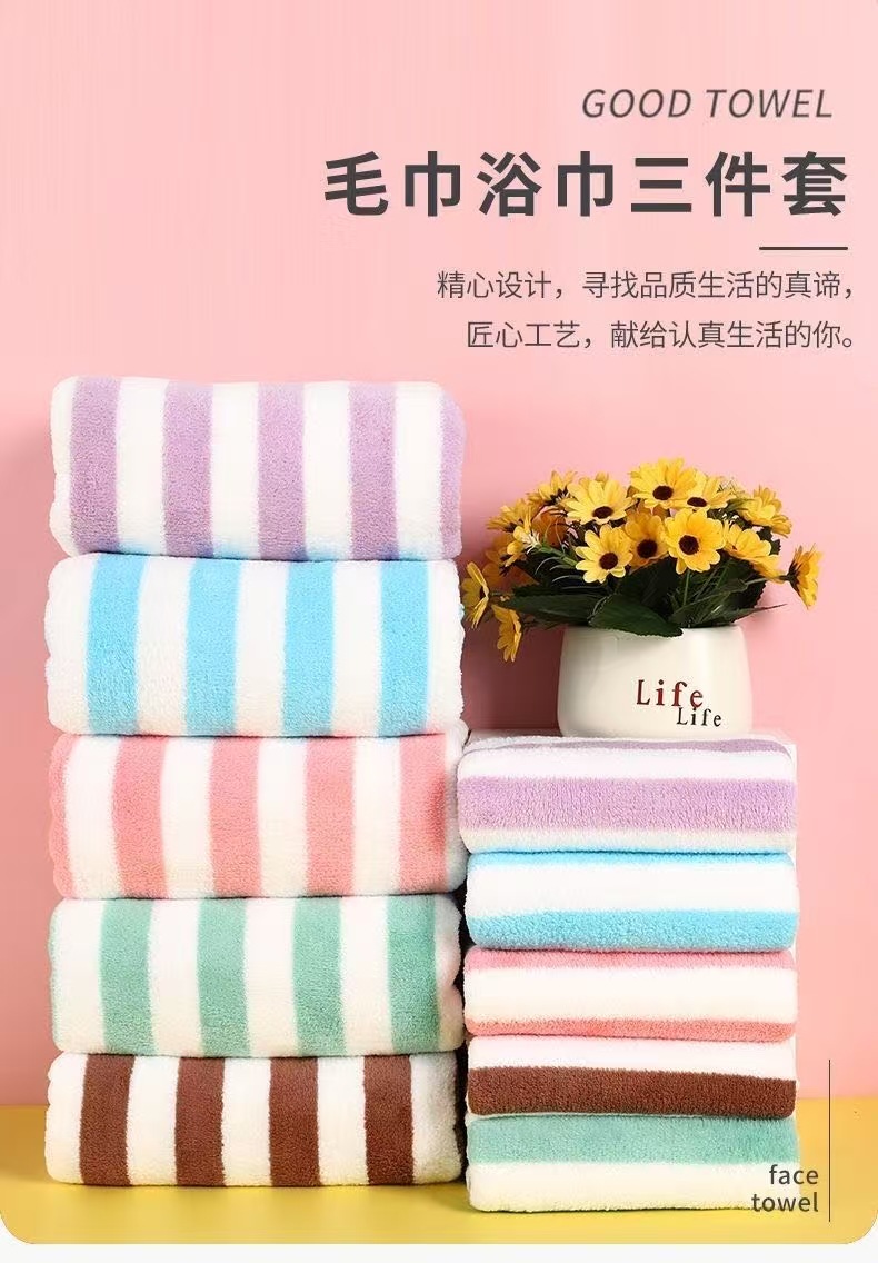 산호 벨벳 스트라이프 타월 목욕 타월 3 피스 선물 상자 홍보 기념품 비즈니스 회사 선물 타월 세트스토어 가기