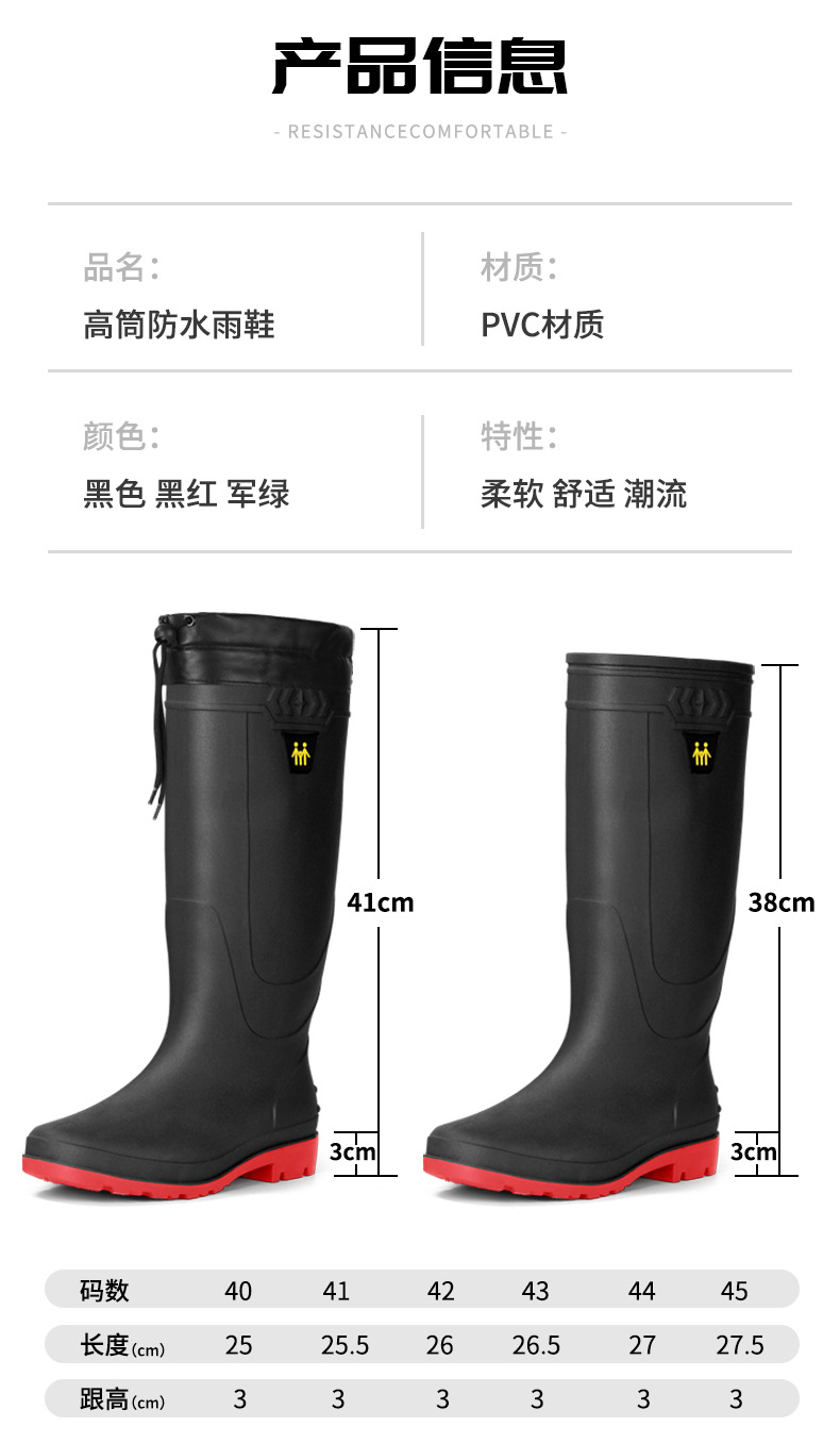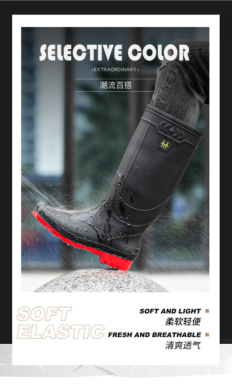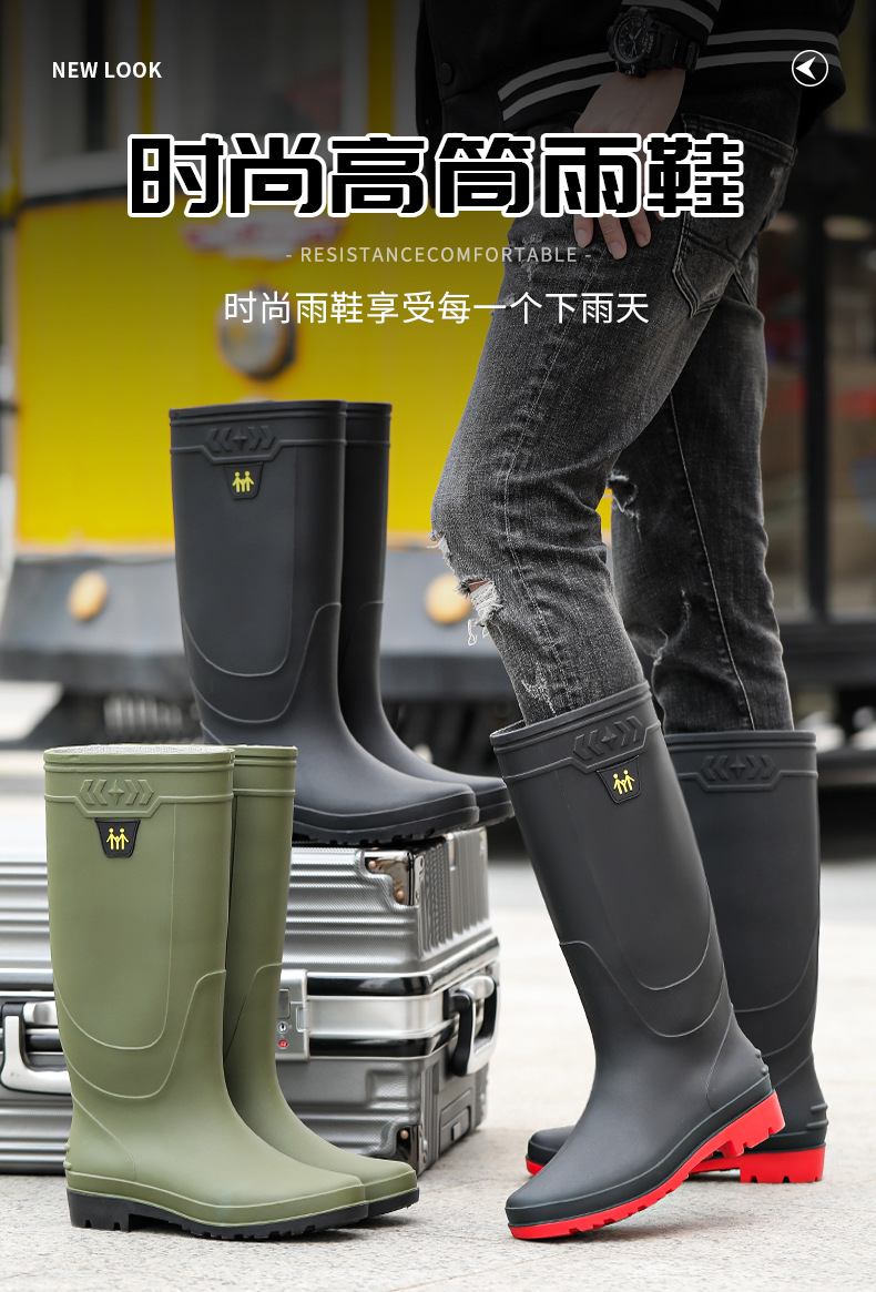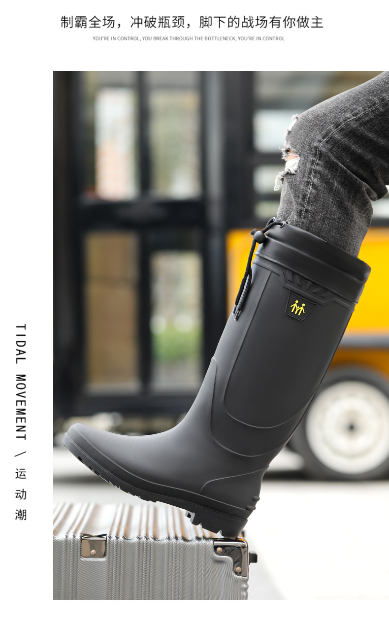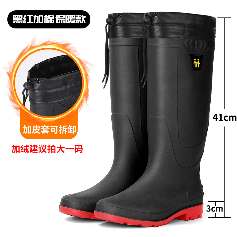 남성용 대형 장화, 하이탑 두꺼운 밑창 내마모성 장화, 방수 및 미끄럼 방지 건설 현장 따뜻한 덧신, 사계절 워터슈즈, 고무신스토어 가기