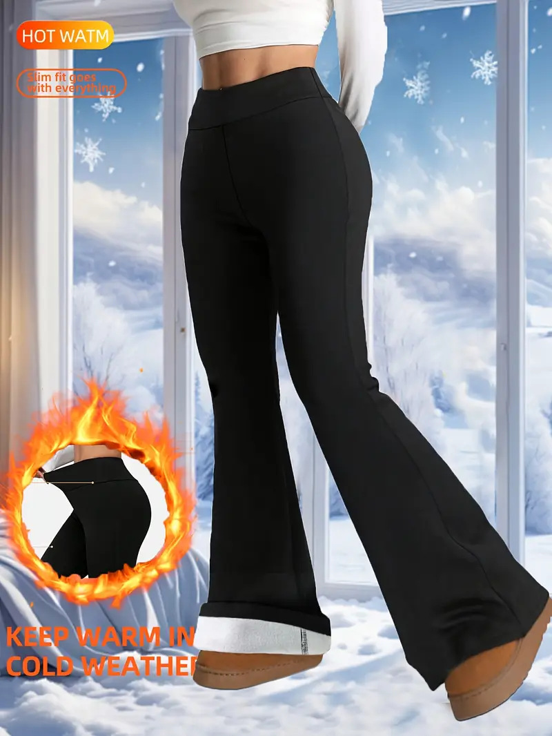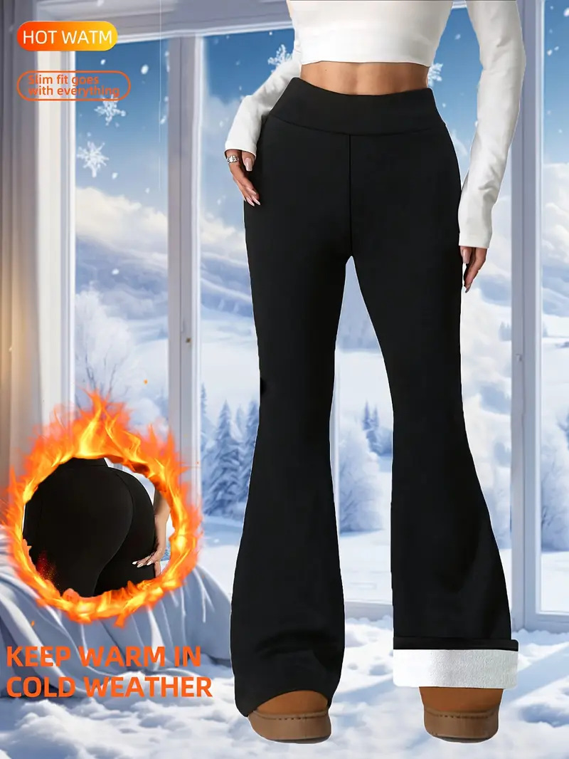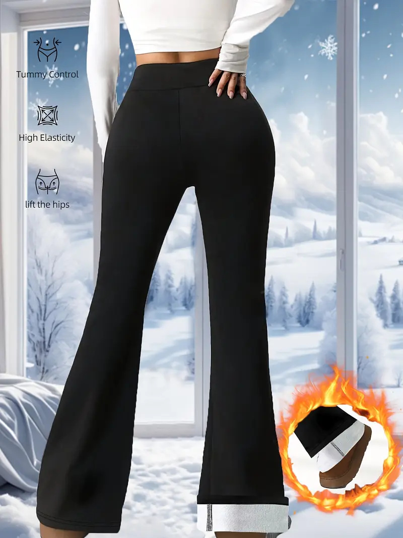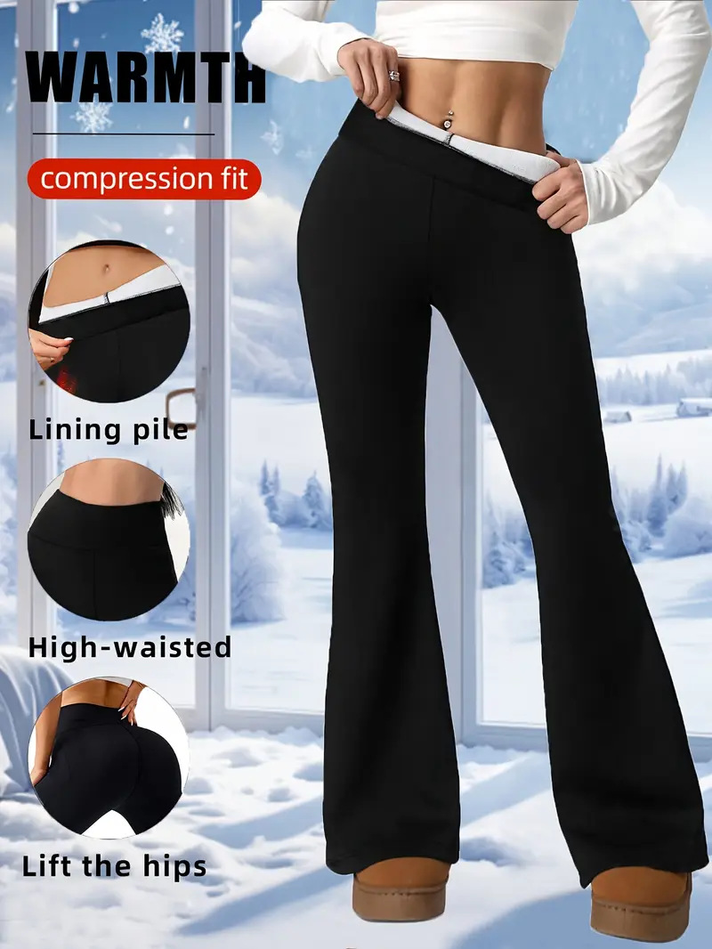 배를 조절하고 엉덩이를 들어 올려주는 크로스보더 여성용 하이웨이스트 플레어 팬츠, 매우 부드럽고 두꺼운 플리스 안감 겨울 레깅스 캐주얼 팬츠