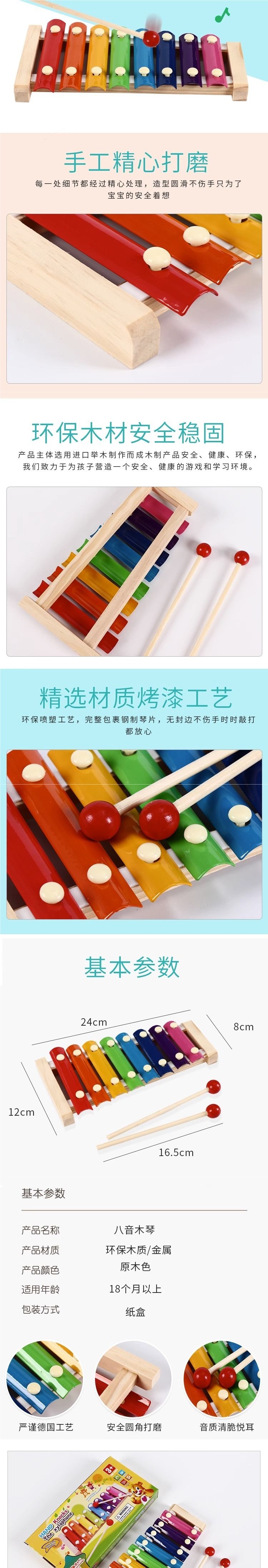 아기 계몽 교육 8음악 나무 타악기 작은 실로폰 1-3세 남성과 여성 조기 교육 아기 장난감 악기
