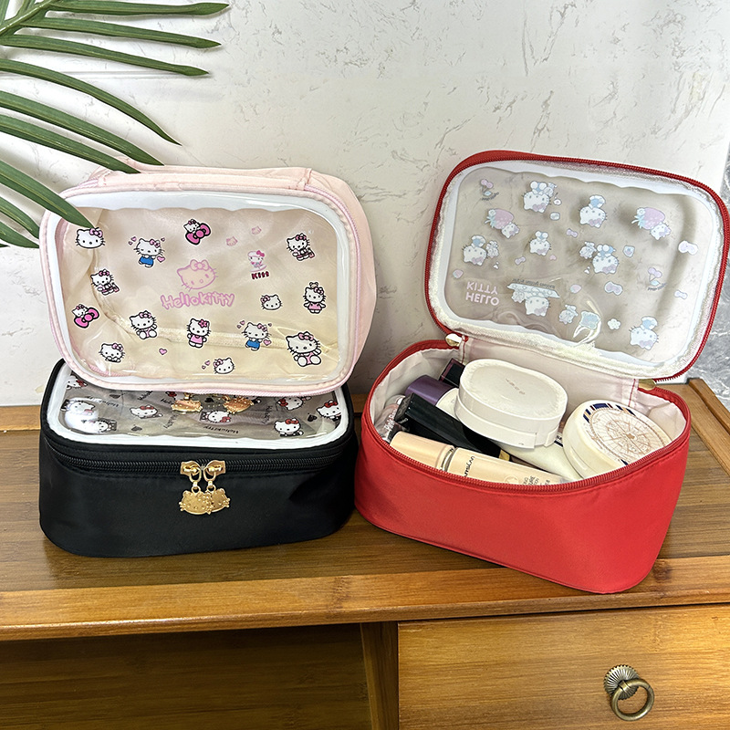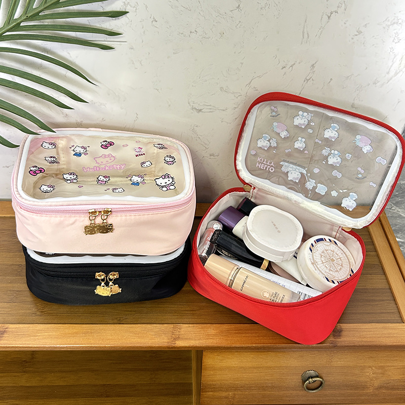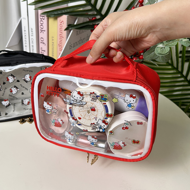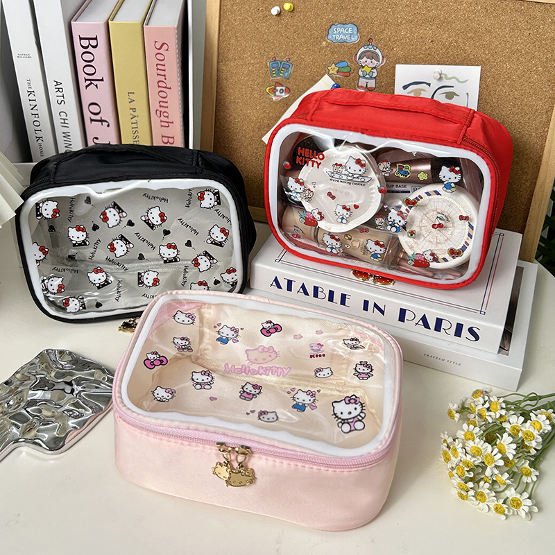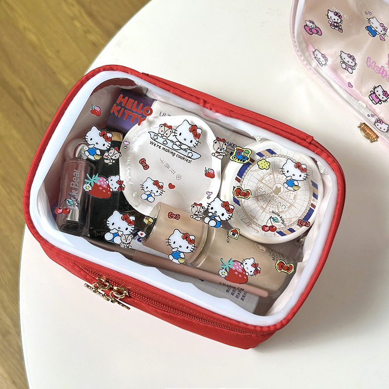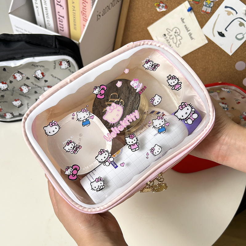 귀여운 투명 키티 휴대용 화장품 가방 일본 여행 만화 보관 휴대용 대용량 스킨 케어 세면 용품 가방스토어 가기