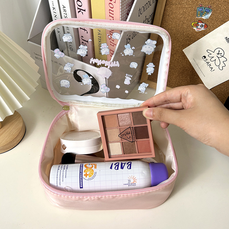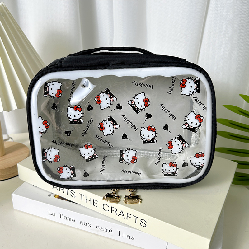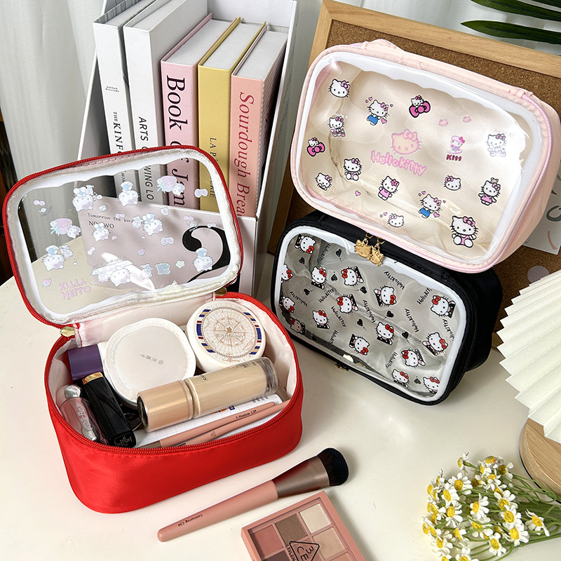 귀여운 투명 키티 휴대용 화장품 가방 일본 여행 만화 보관 휴대용 대용량 스킨 케어 세면 용품 가방