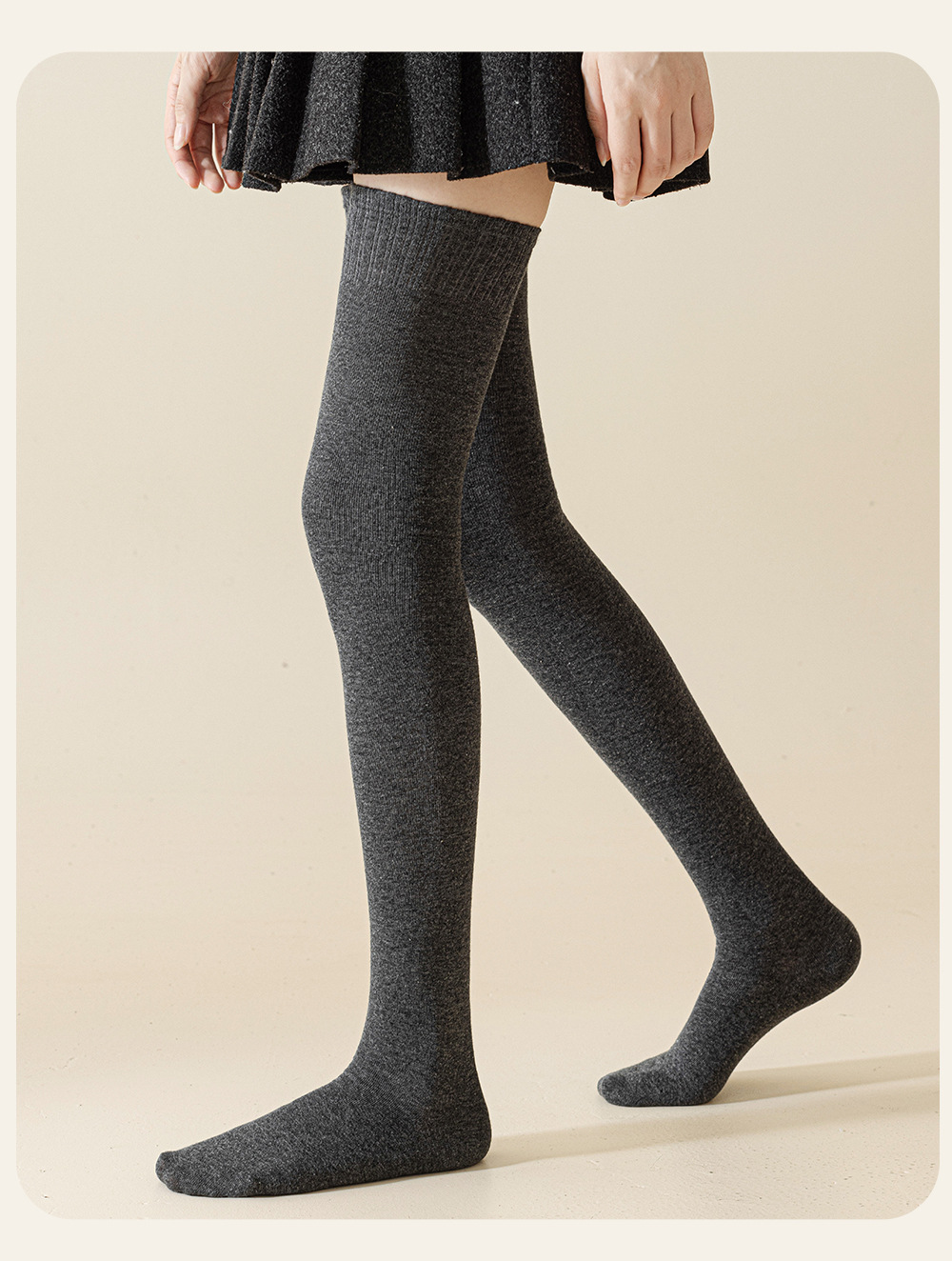 가을 겨울 여성용 검정색 긴 무릎 양말, 면 양말, 허벅지 양말, 무릎 보호, 따뜻하고 미끄럼 방지 하이 양말