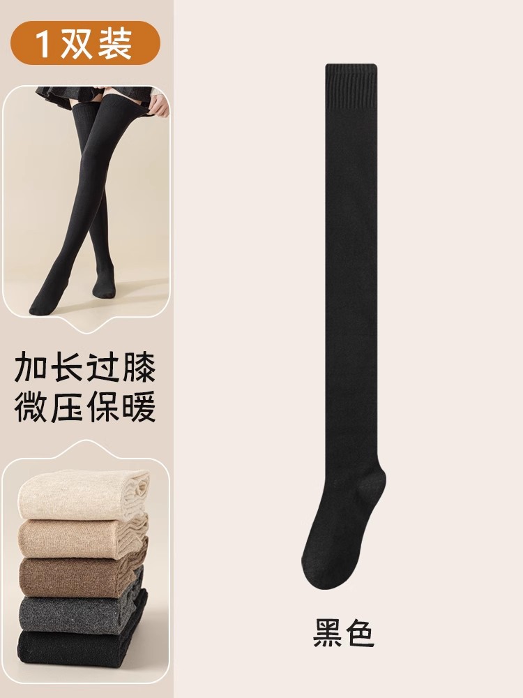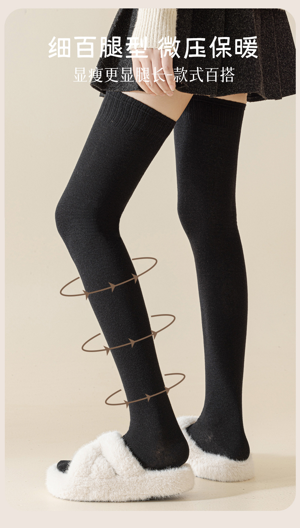 가을 겨울 여성용 검정색 긴 무릎 양말, 면 양말, 허벅지 양말, 무릎 보호, 따뜻하고 미끄럼 방지 하이 양말스토어 가기