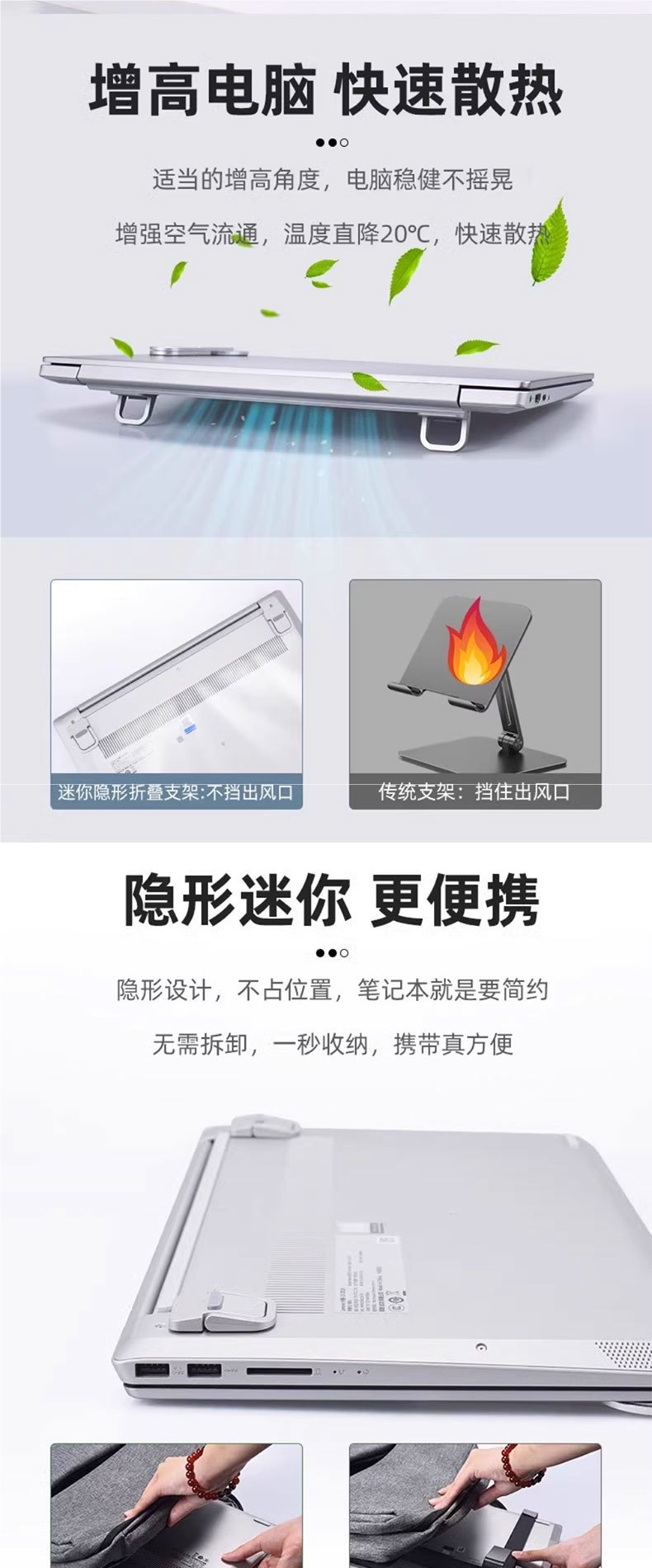 노트북 스탠드, 휴대용 발 지지대, 데스크탑 높이 조절 패드, 보이지 않는 키보드, 미니 지지대, 접이식 베이스스토어 가기