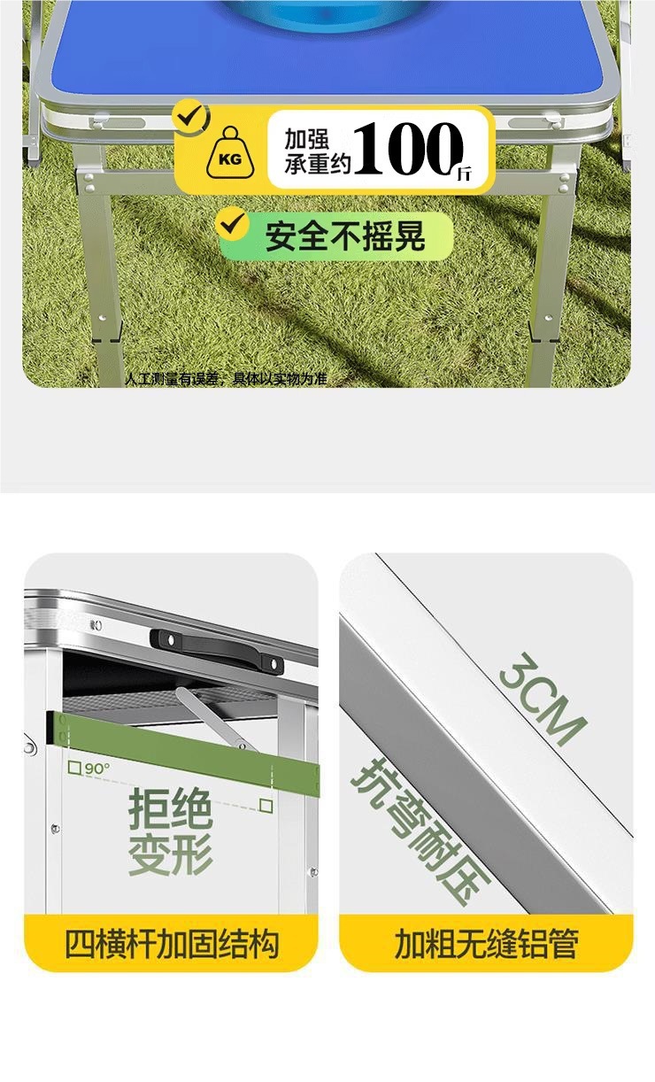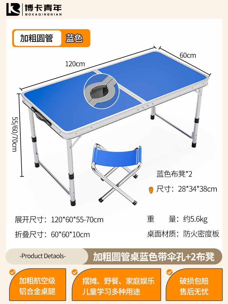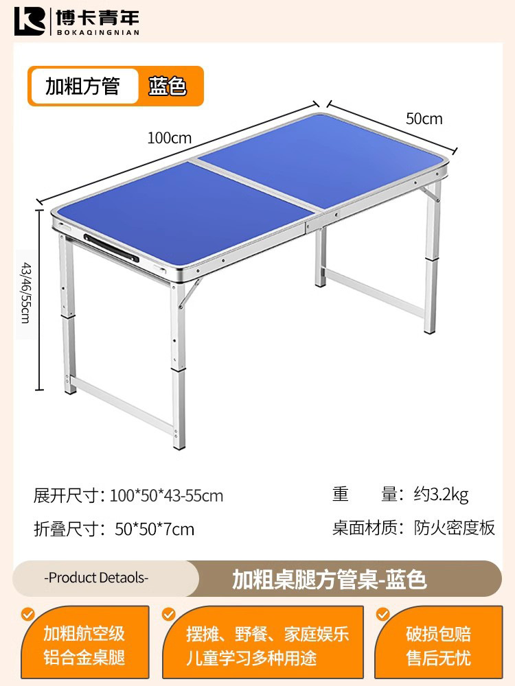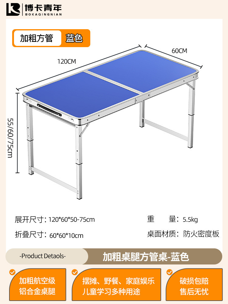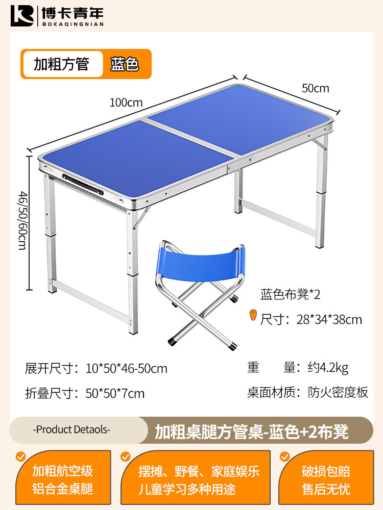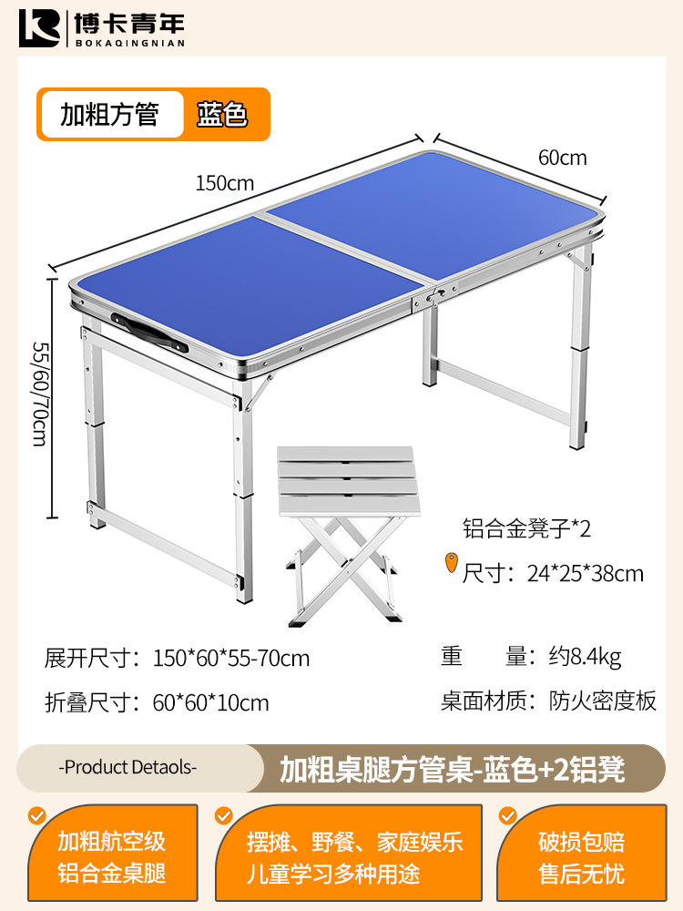 • 업그레이드된 대외 무역 품질 [업그레이드된 알루미늄 합금 사각 튜브] 120*60cm 파란색 + 알루미늄 의자 2개♢