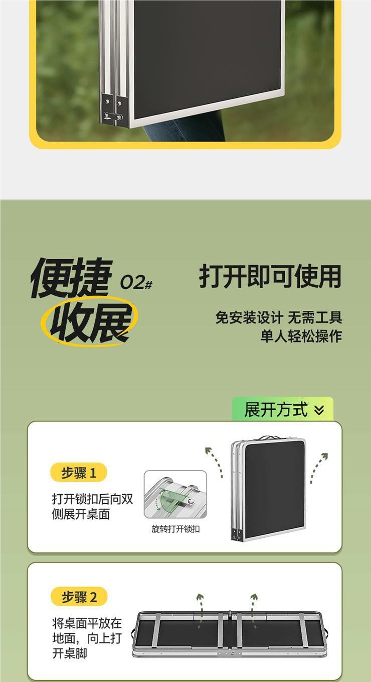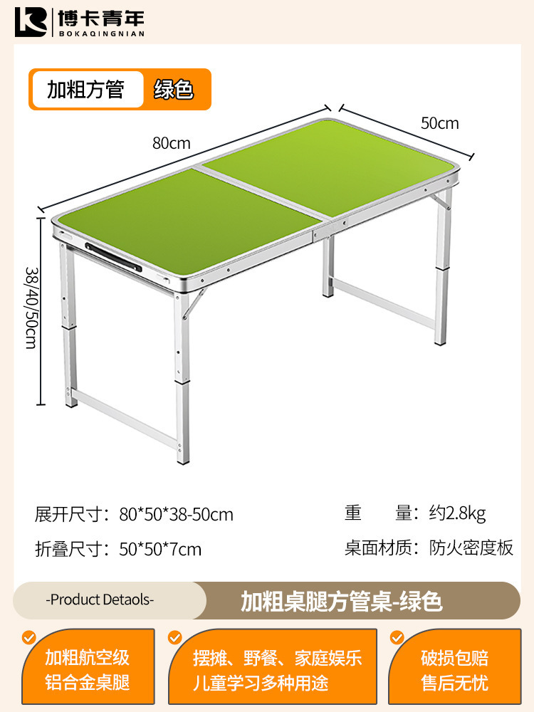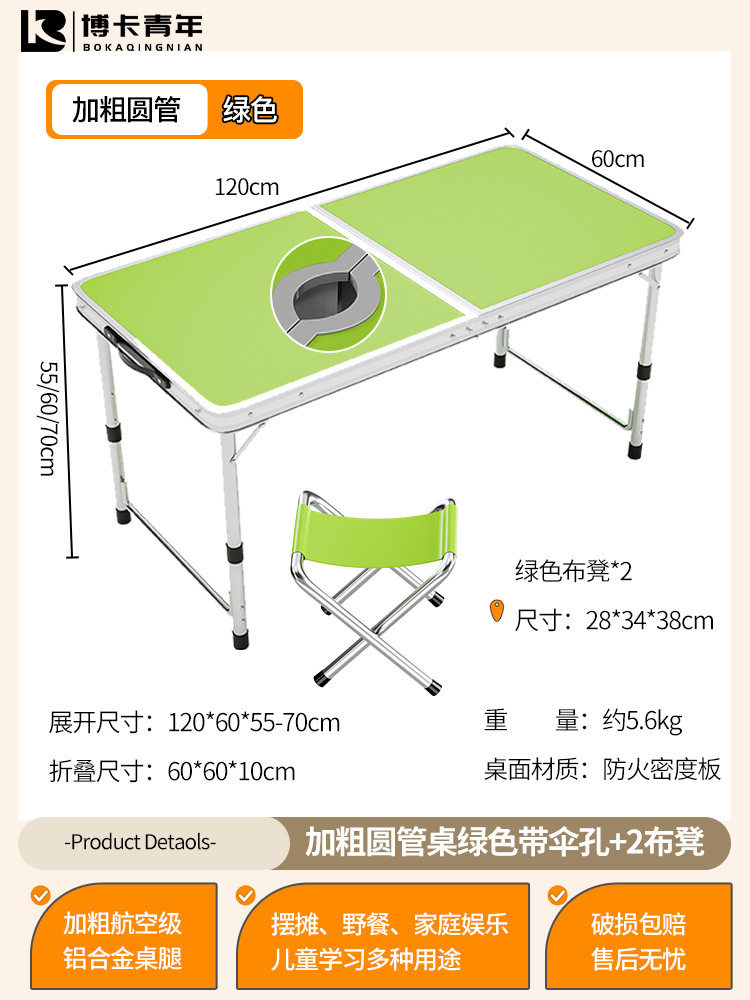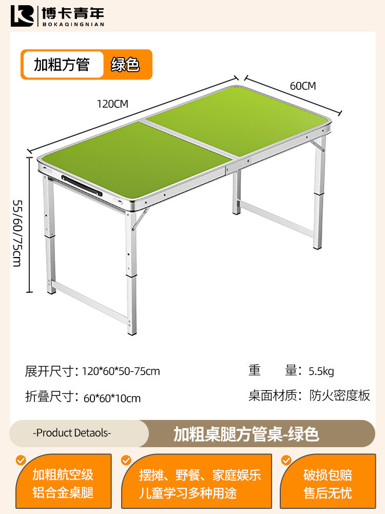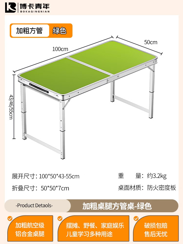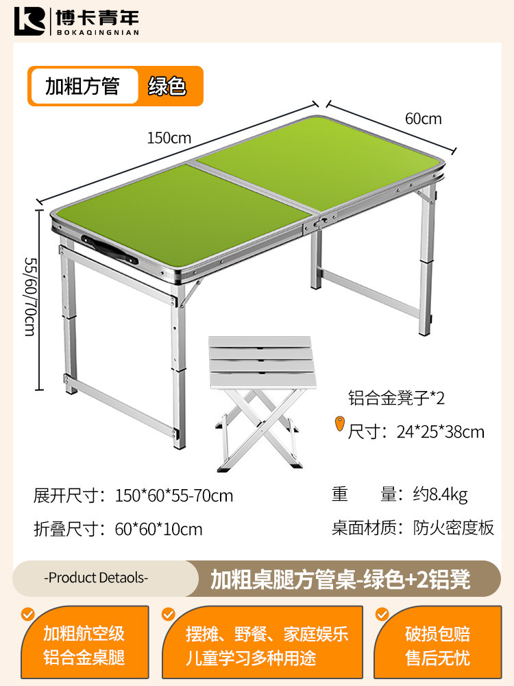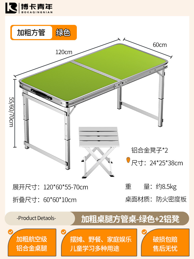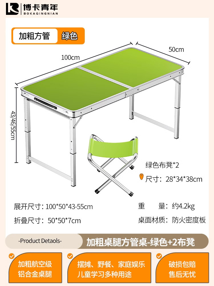 • 업그레이드된 대외 무역 품질 [업그레이드된 알루미늄 합금 사각 튜브] 120*60cm 녹색 + 알루미늄 의자 2개♢