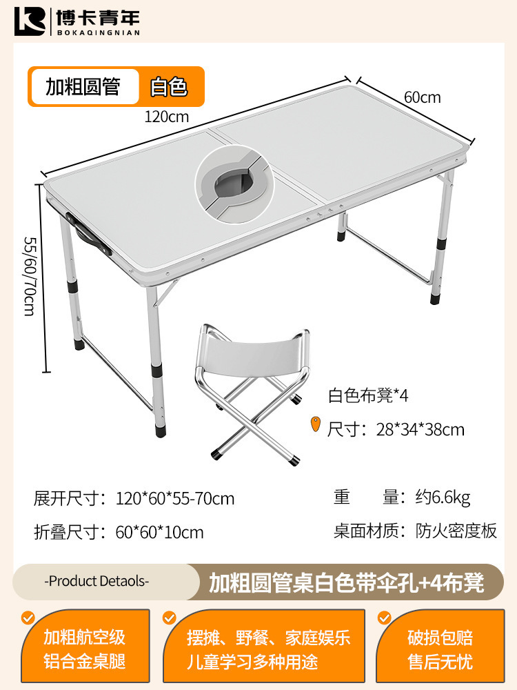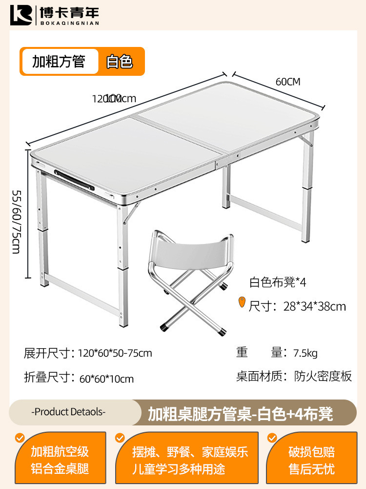 • 업그레이드된 대외 무역 품질 [업그레이드된 알루미늄 합금 사각 튜브] 120*60cm 흰색 + 알루미늄 의자 4개♢