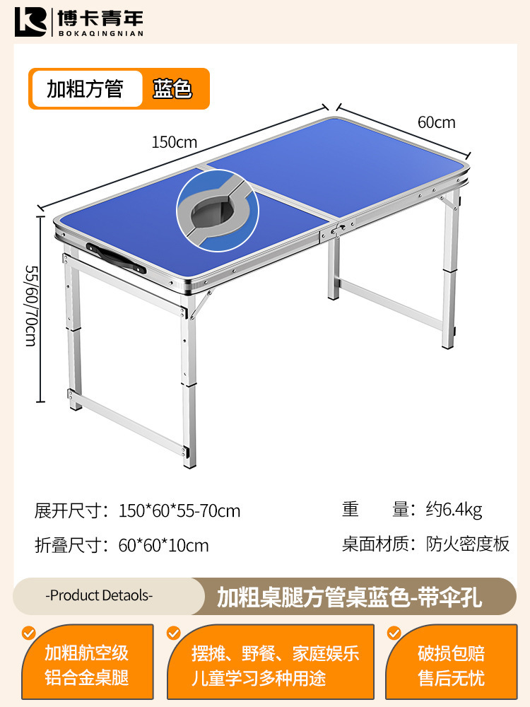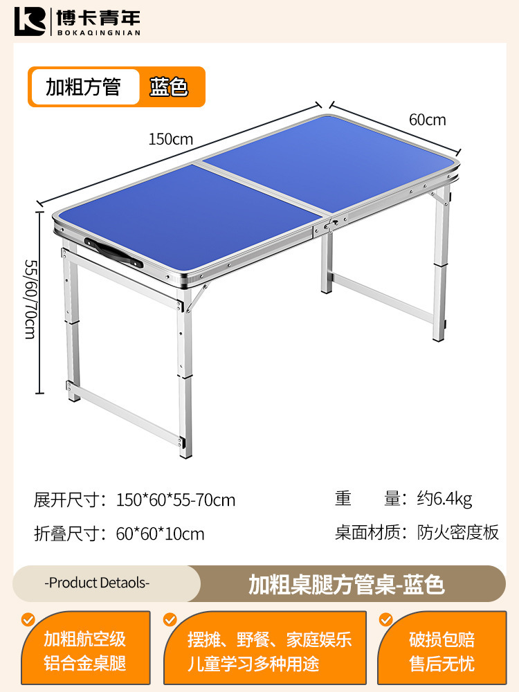 • 업그레이드된 대외 무역 품질 [업그레이드된 알루미늄 합금 사각 튜브] 150*60cm 파란색 + 알루미늄 의자 4개♢