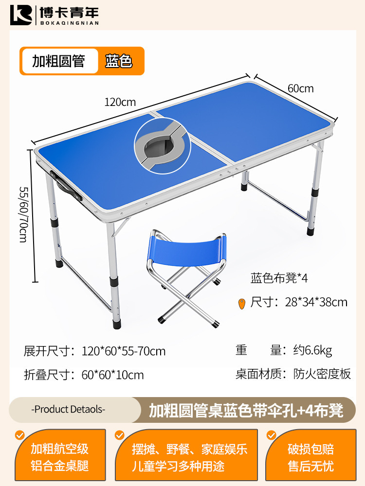 • 업그레이드된 대외 무역 품질 [업그레이드된 알루미늄 합금 사각 튜브] 120*60cm 파란색 + 알루미늄 의자 4개♢