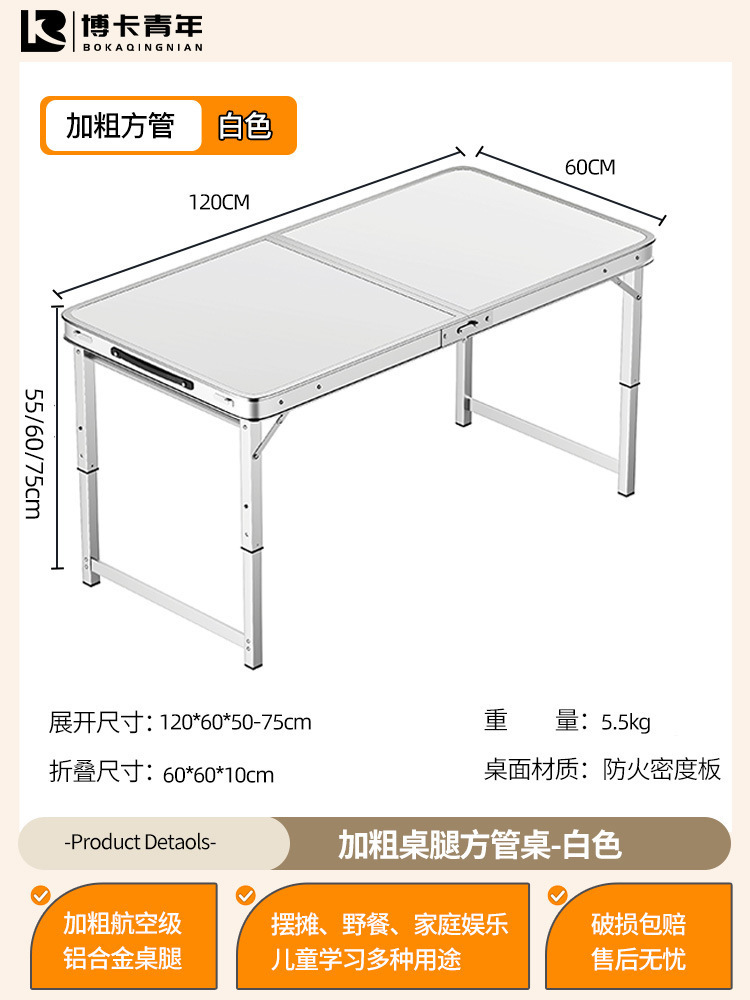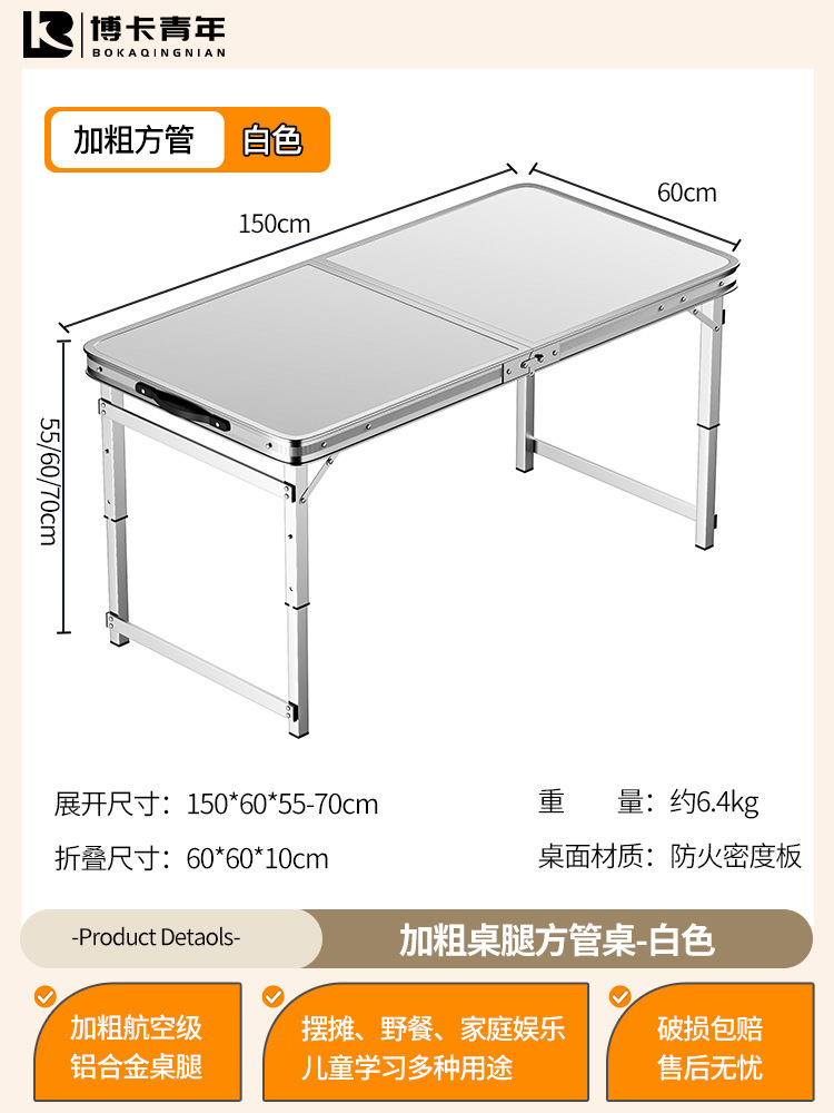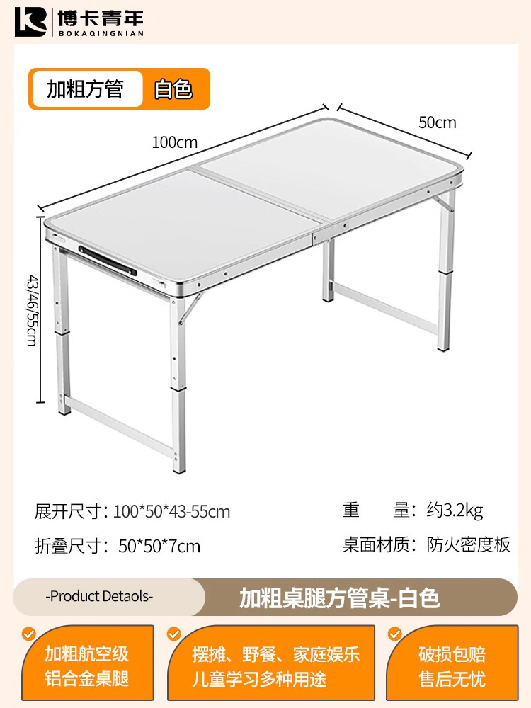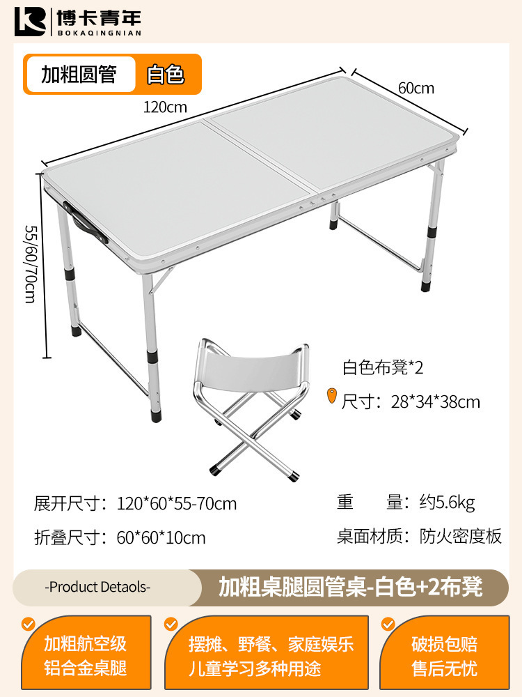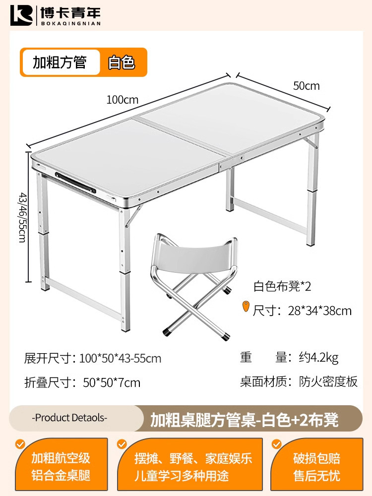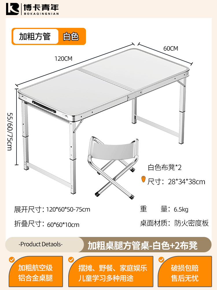 • 업그레이드된 대외 무역 품질 [업그레이드된 알루미늄 합금 사각 튜브] 120*60cm 흰색 + 알루미늄 의자 2개♢