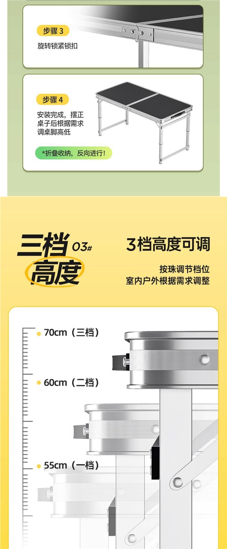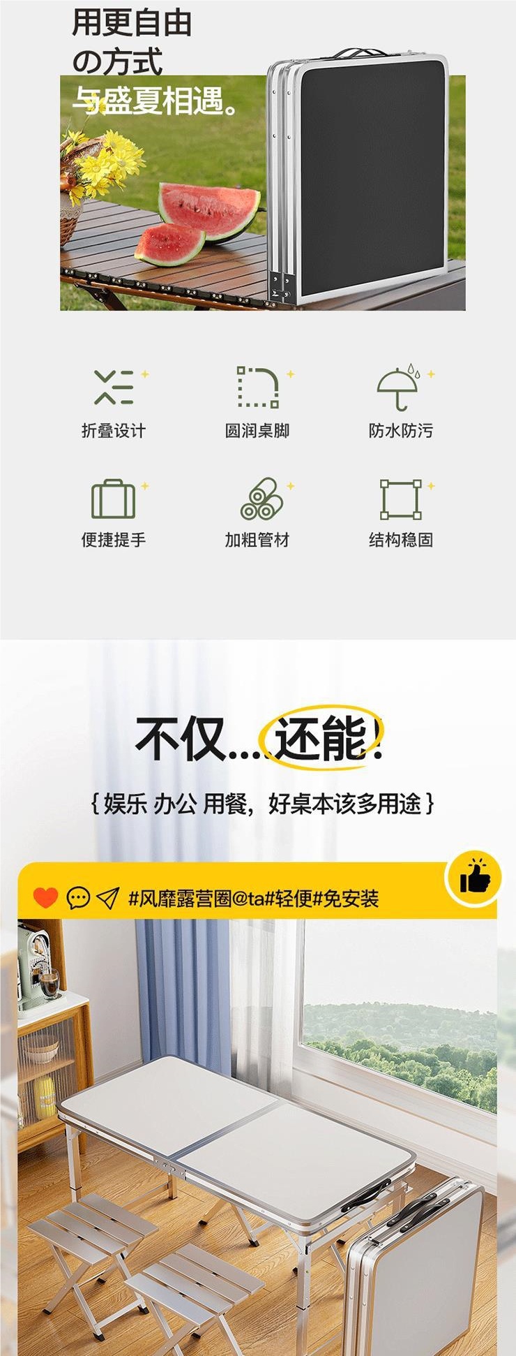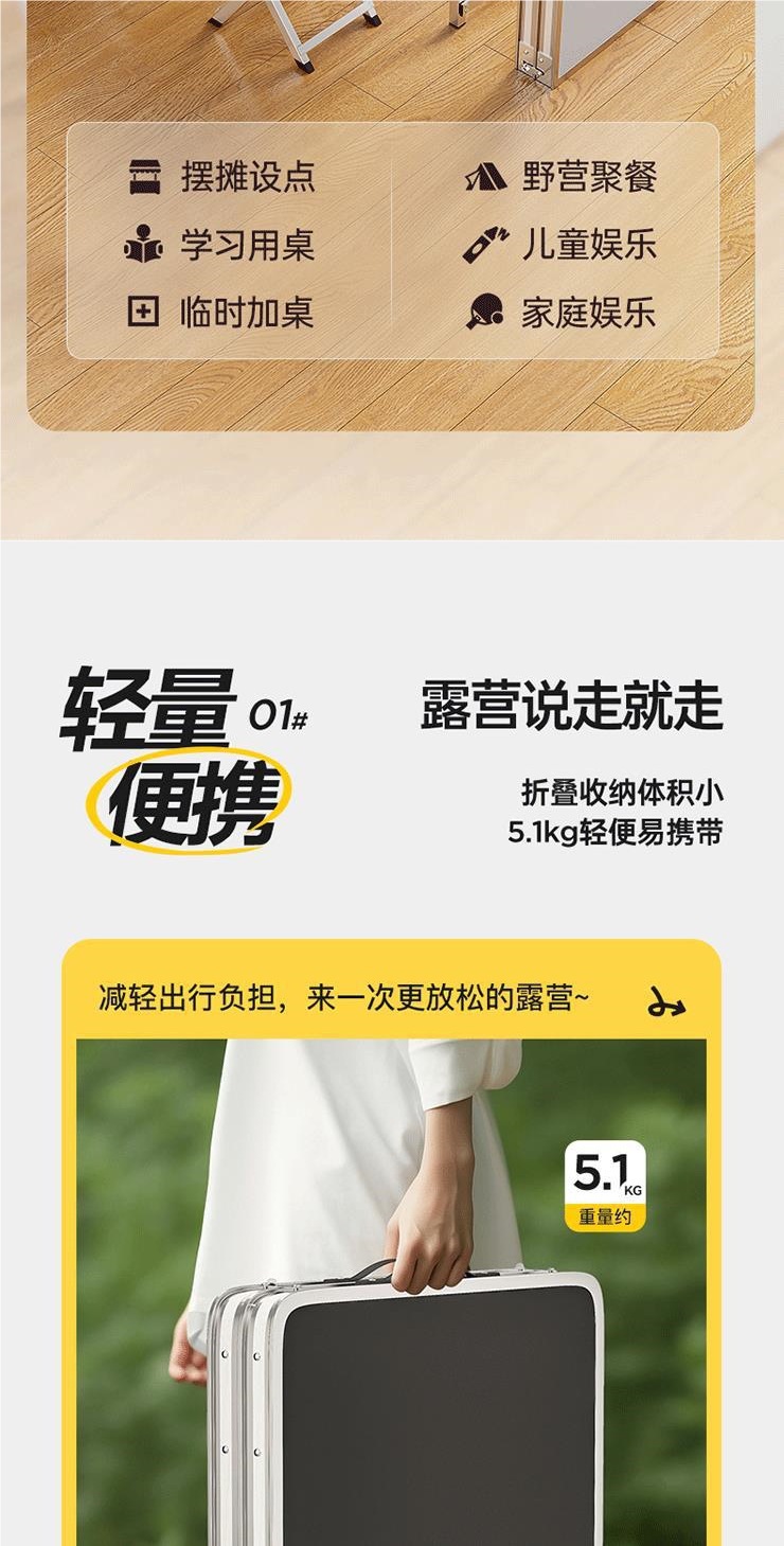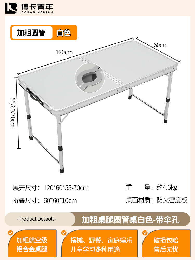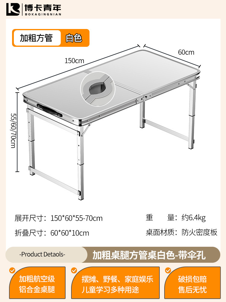 • 업그레이드된 대외 무역 품질 [업그레이드된 알루미늄 합금 사각 튜브] 120*60cm 흰색 + 알루미늄 의자 2개♢