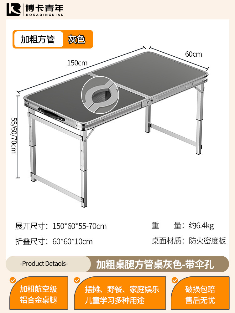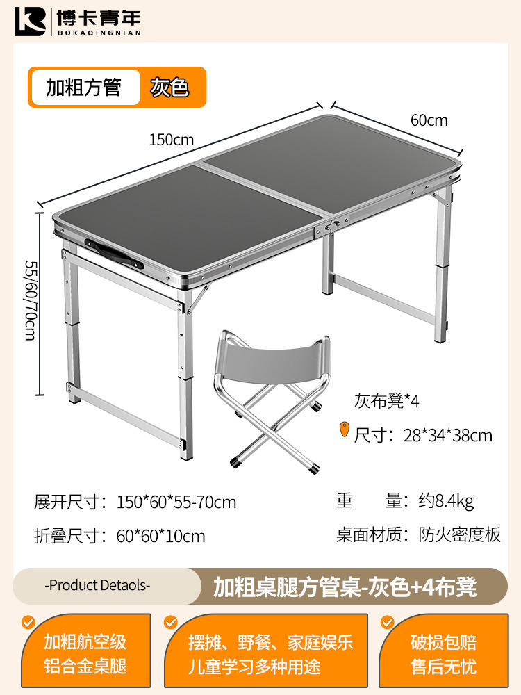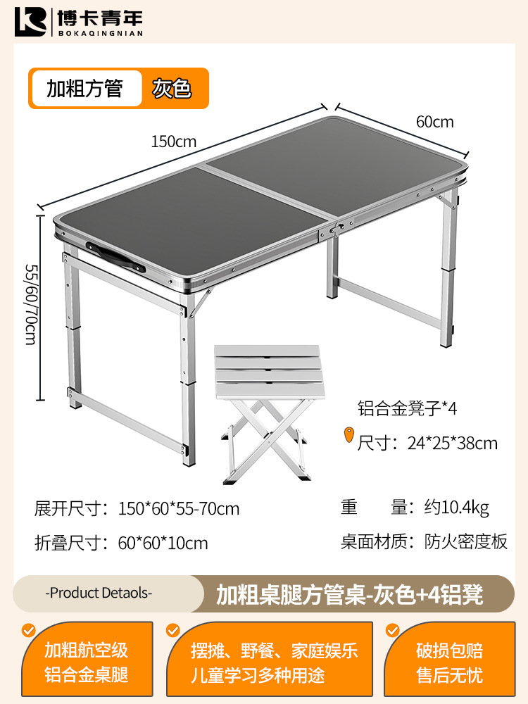 • 업그레이드된 대외 무역 품질 [업그레이드된 알루미늄 합금 사각 튜브] 150*60cm 회색 + 알루미늄 의자 4개♢