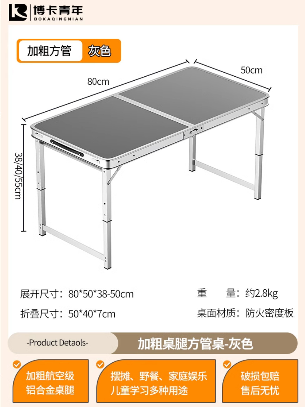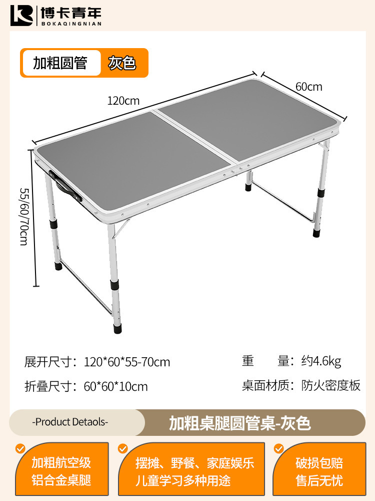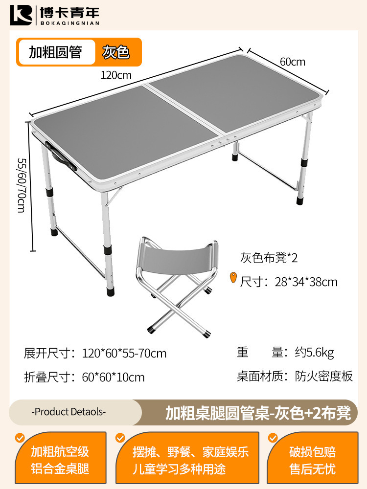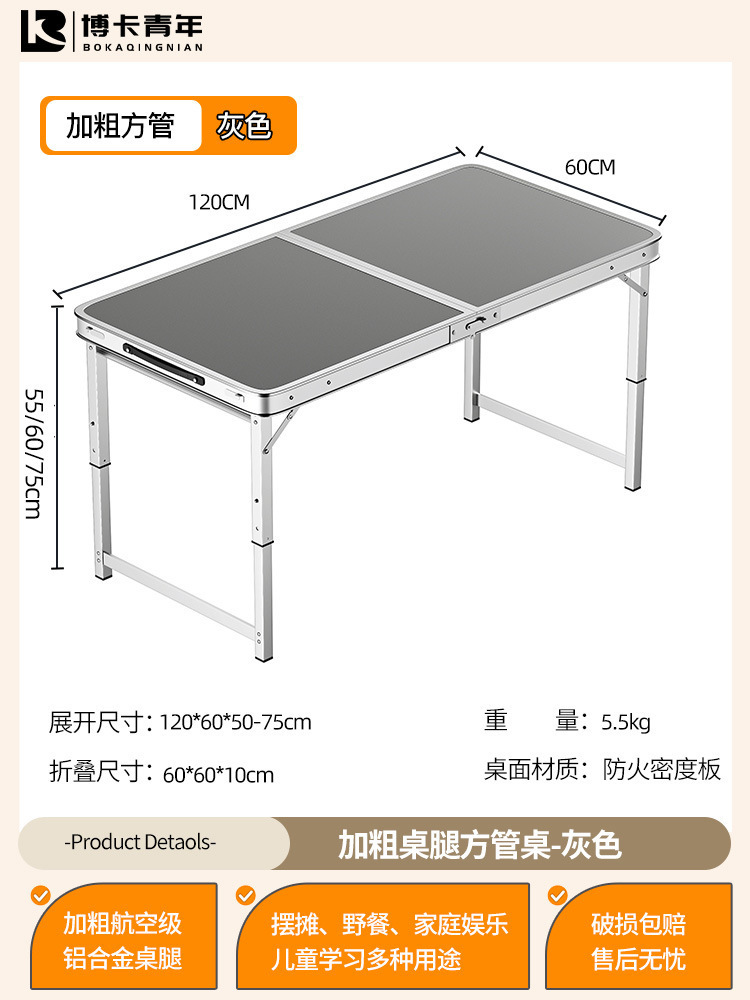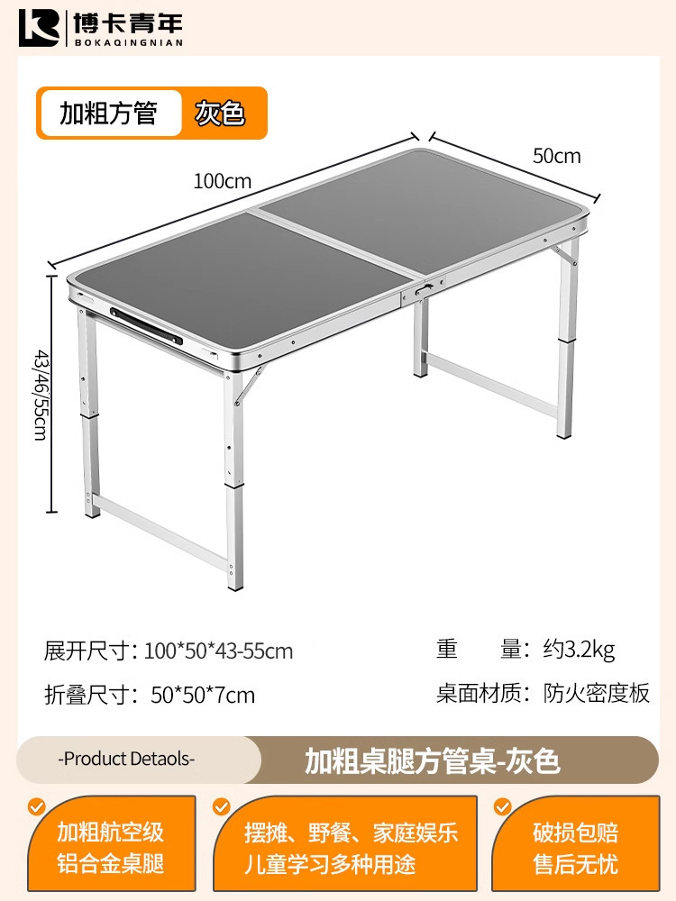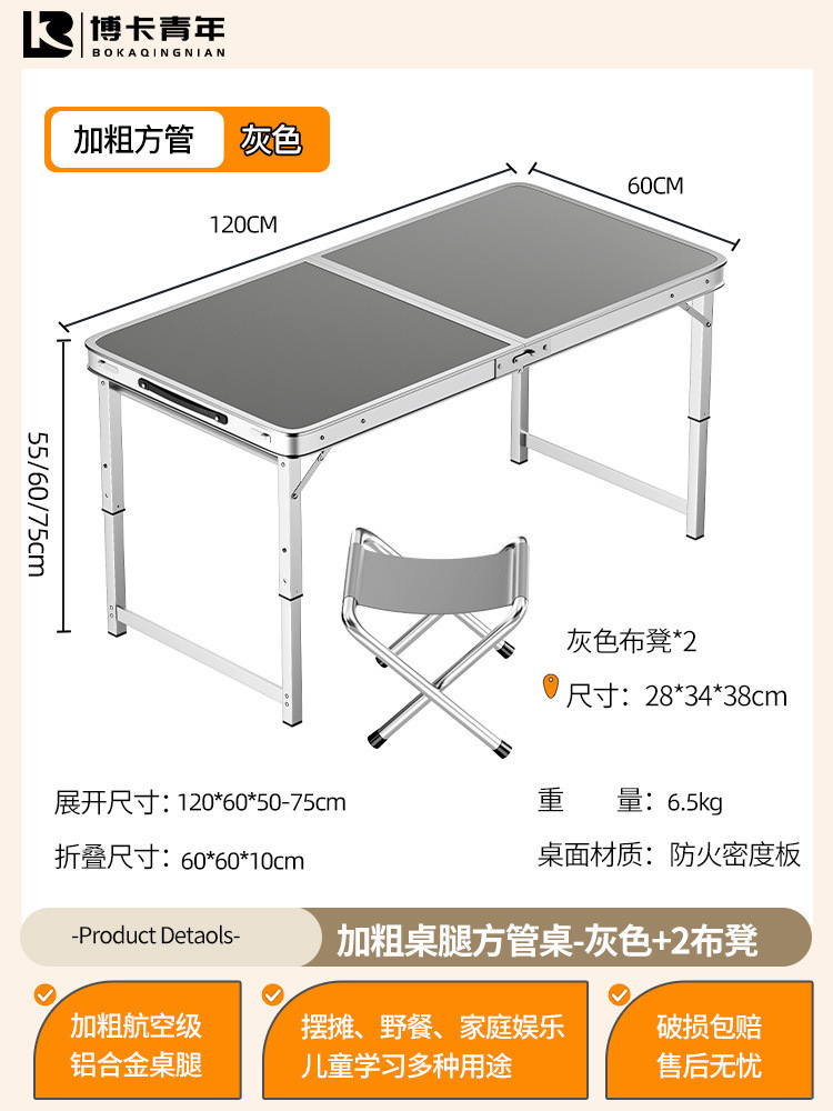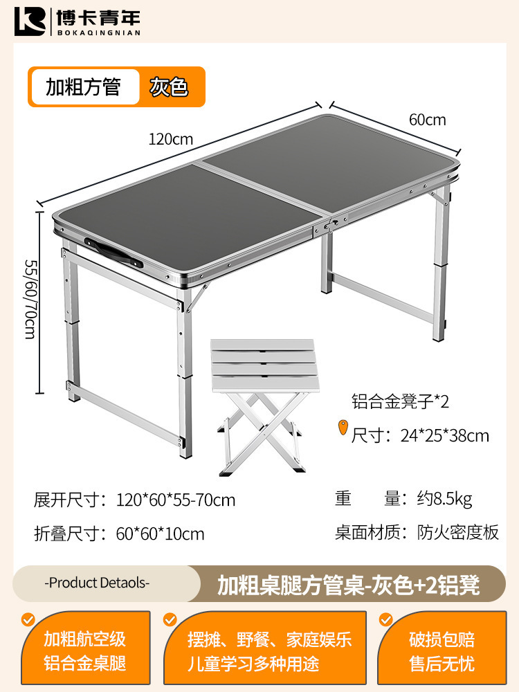 • 업그레이드된 대외 무역 품질 [업그레이드된 알루미늄 합금 사각 튜브] 120*60cm 회색 + 알루미늄 의자 2개♢
