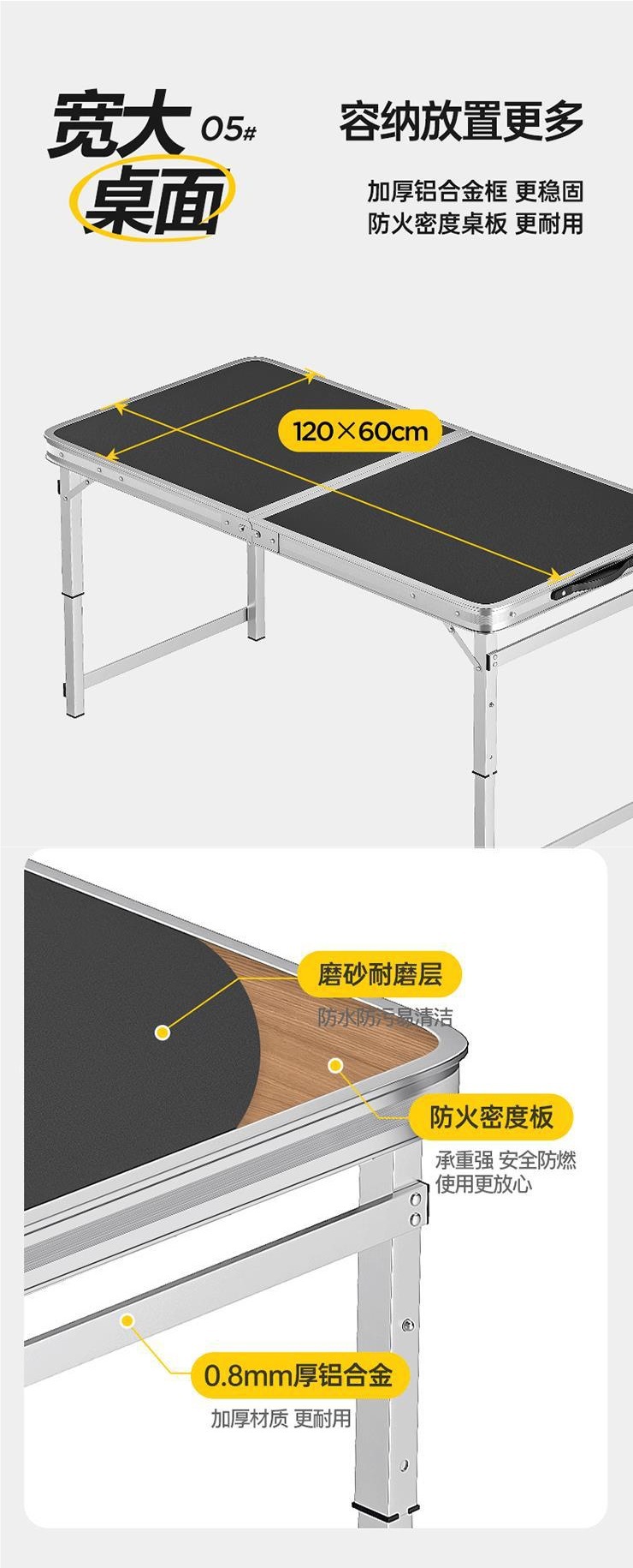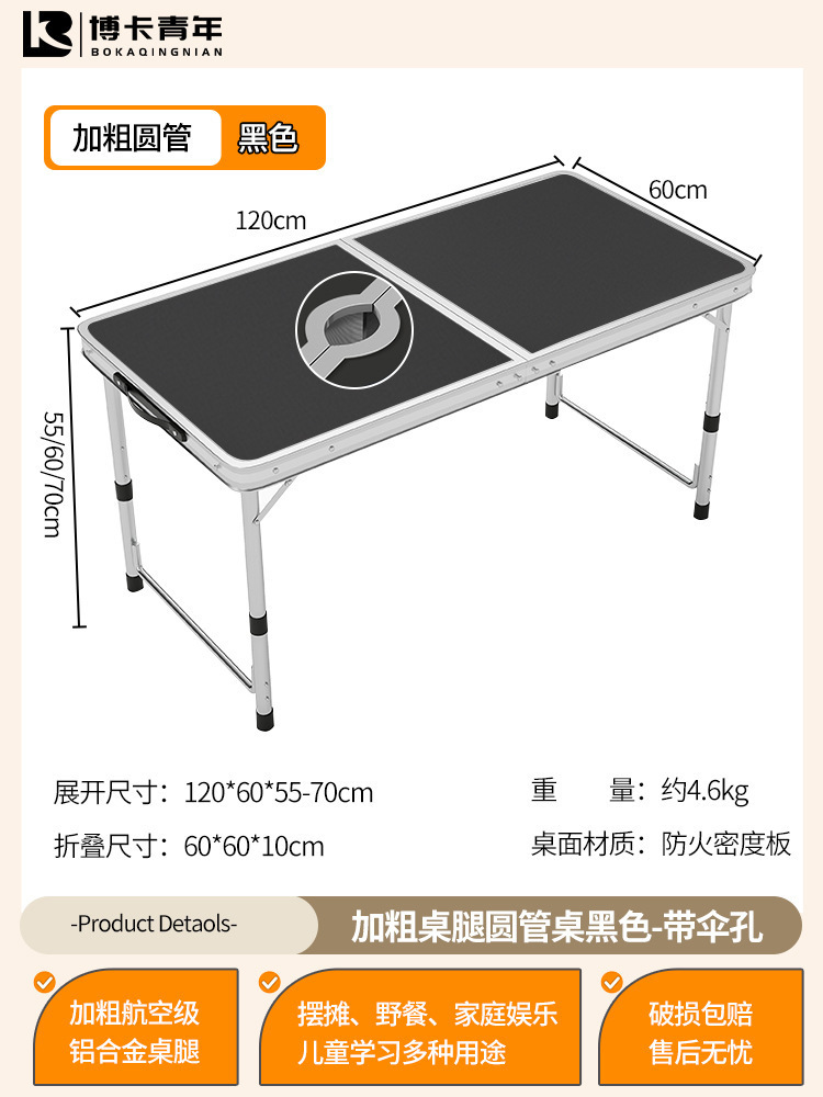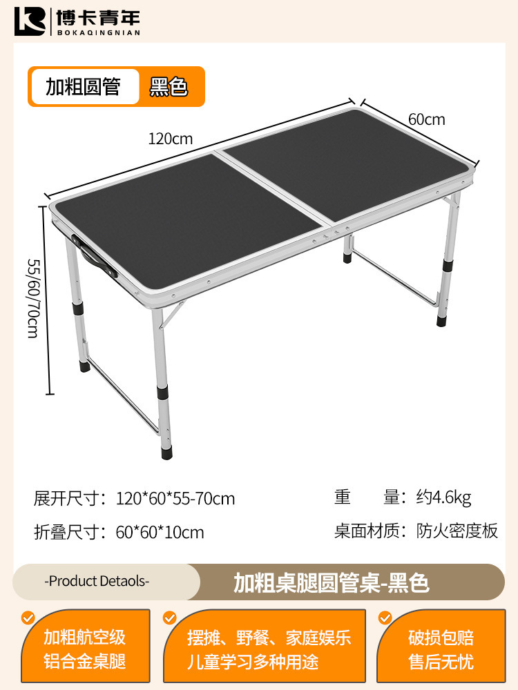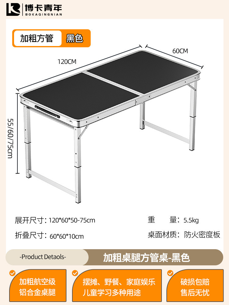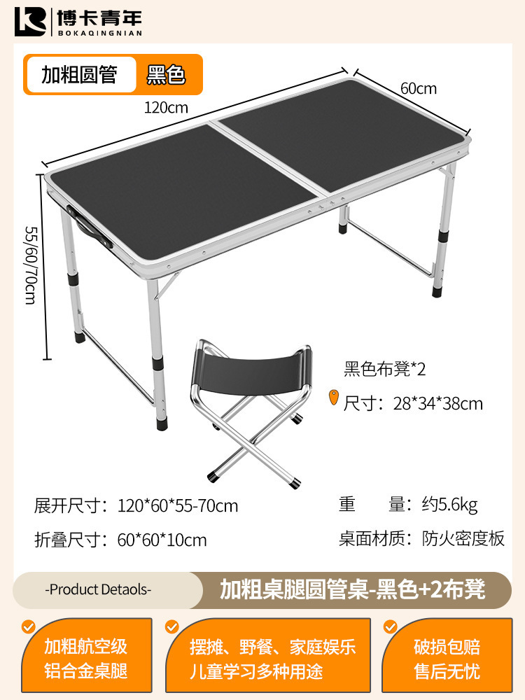 • 업그레이드된 대외 무역 품질 [업그레이드된 알루미늄 합금 사각 튜브] 120*60cm 검정색 + 알루미늄 의자 2개♢