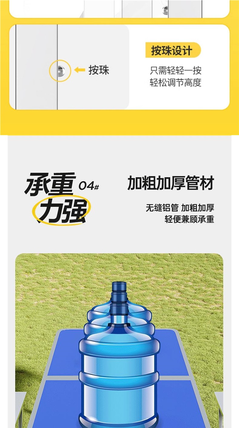 • 업그레이드된 대외 무역 품질 [업그레이드된 알루미늄 합금 사각 튜브] 150*60cm 흰색 + 알루미늄 의자 2개♢