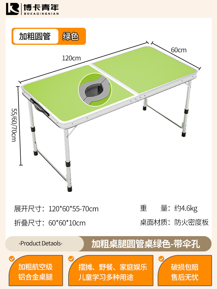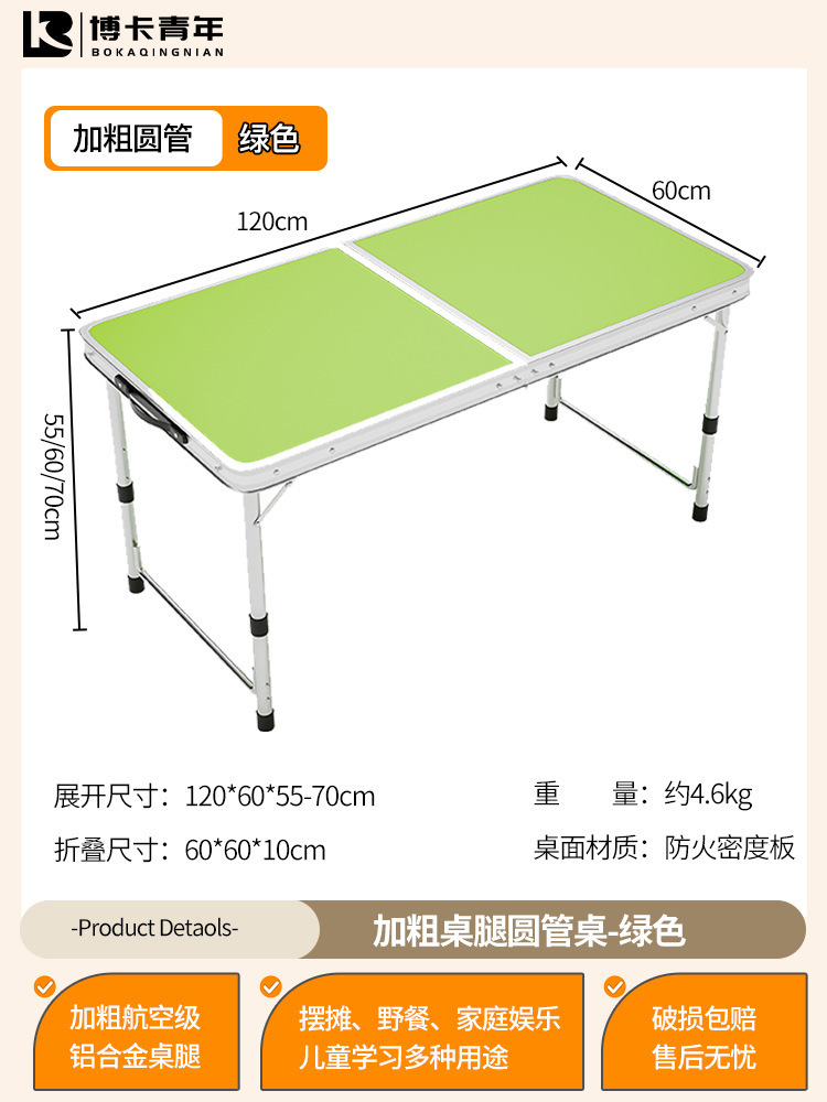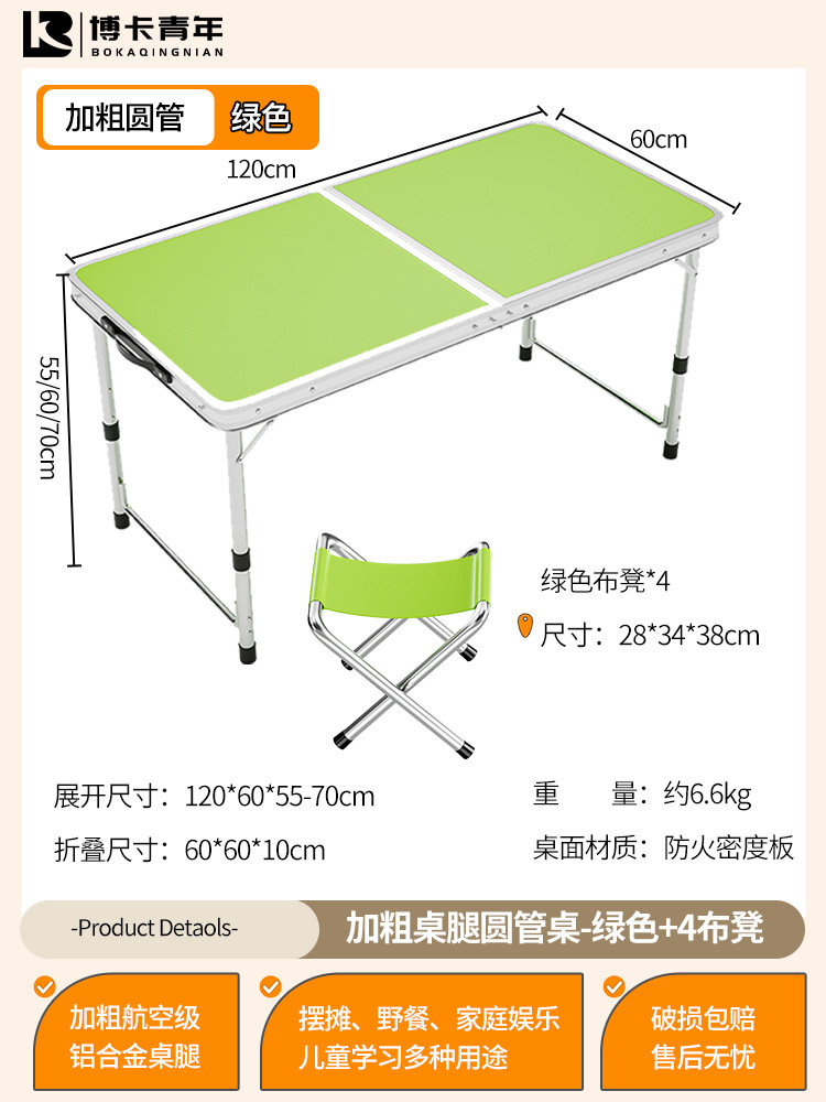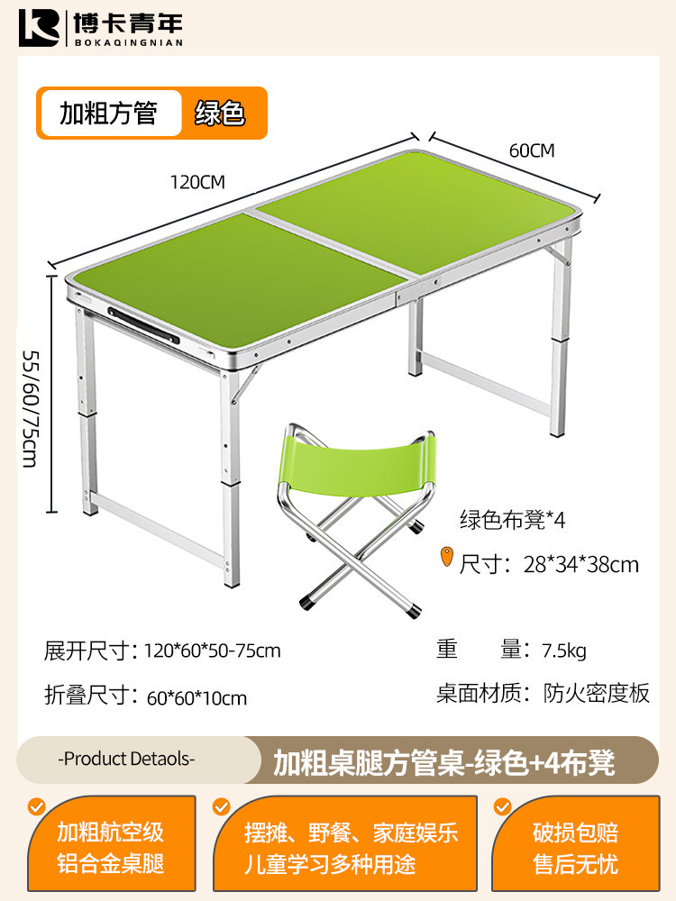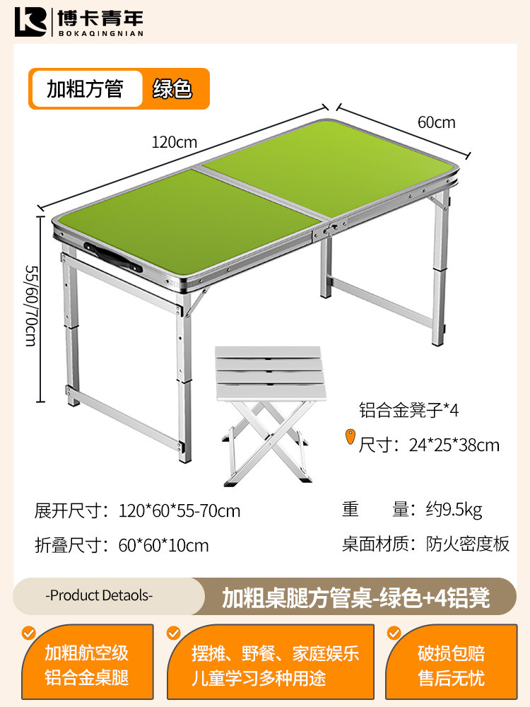 • 업그레이드된 대외 무역 품질 [업그레이드된 알루미늄 합금 사각 튜브] 120*60cm 녹색 + 알루미늄 의자 4개♢