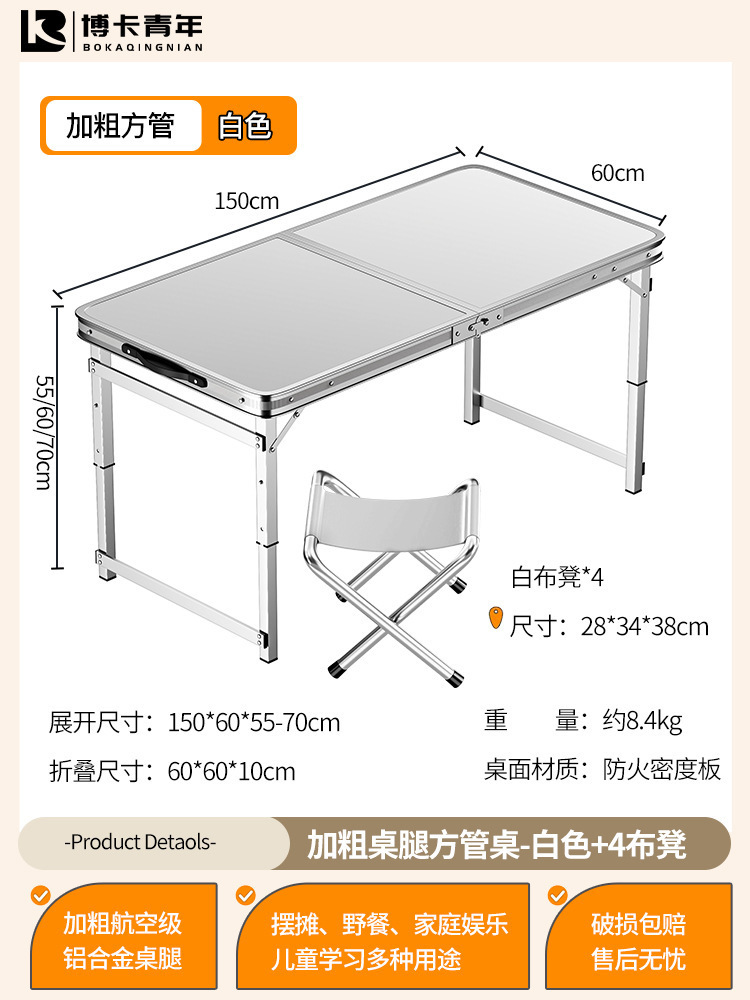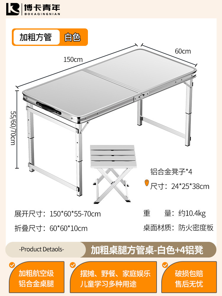 • 업그레이드된 대외 무역 품질 [업그레이드된 알루미늄 합금 사각 튜브] 150*60cm 흰색 + 알루미늄 의자 4개♢