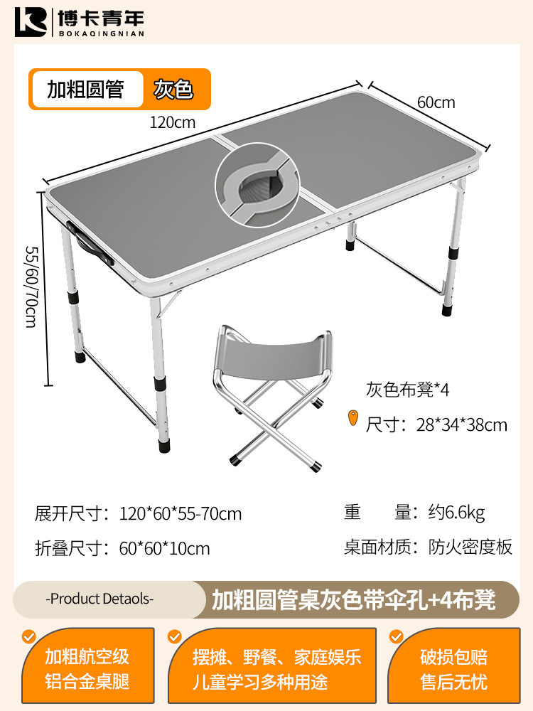 • 업그레이드된 대외 무역 품질 [알루미늄 합금 원형 튜브] 120*60cm 회색 우산 구멍 + 천 의자 4개