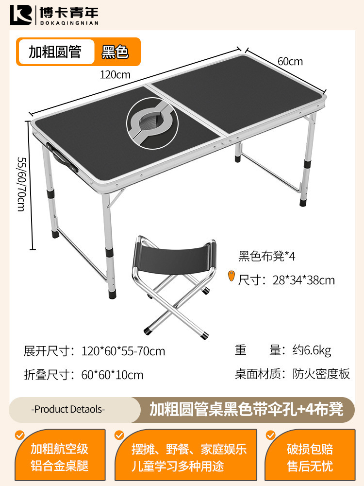 • 업그레이드된 대외 무역 품질 [업그레이드된 알루미늄 합금 사각 튜브] 120*60cm 검정색 + 알루미늄 의자 4개♢