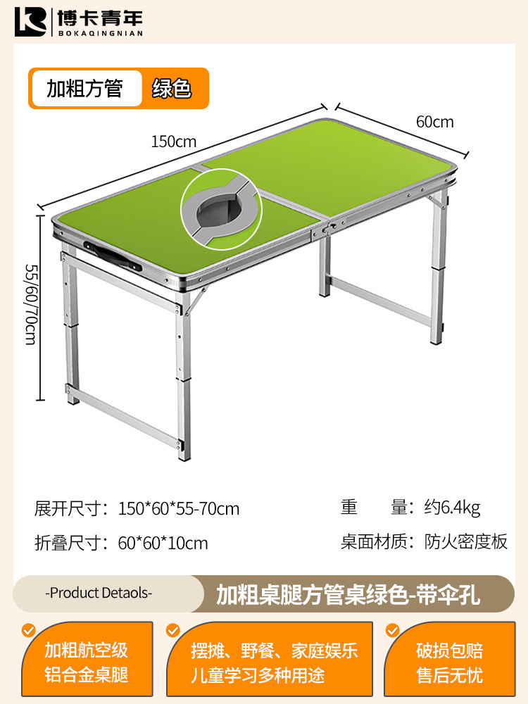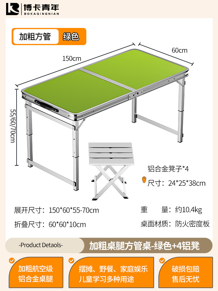 • 업그레이드된 대외 무역 품질 [업그레이드된 알루미늄 합금 사각 튜브] 150*60cm 녹색 + 알루미늄 의자 4개♢