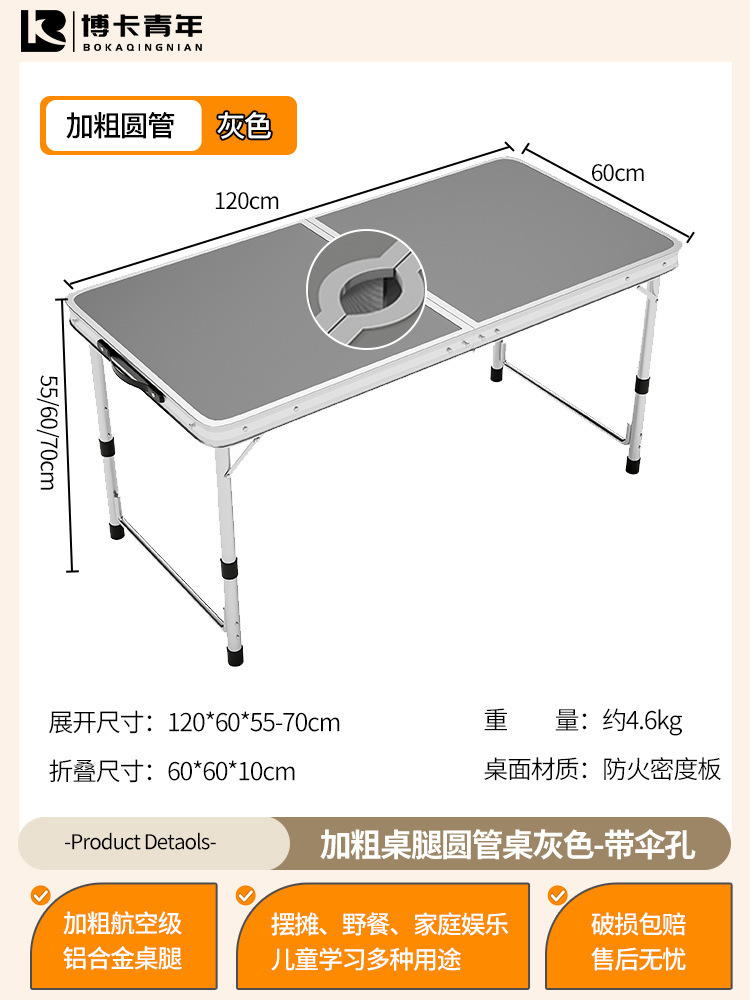 • 업그레이드된 대외 무역 품질 [알루미늄 합금 원형 튜브] 120*60cm 회색 우산 구멍 포함♢♢