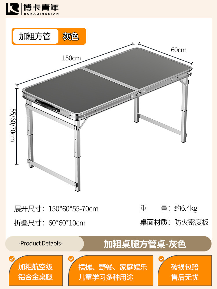 • 업그레이드된 대외 무역 품질 [업그레이드된 알루미늄 합금 사각 튜브] 150*60cm 회색 + 알루미늄 의자 2개♢