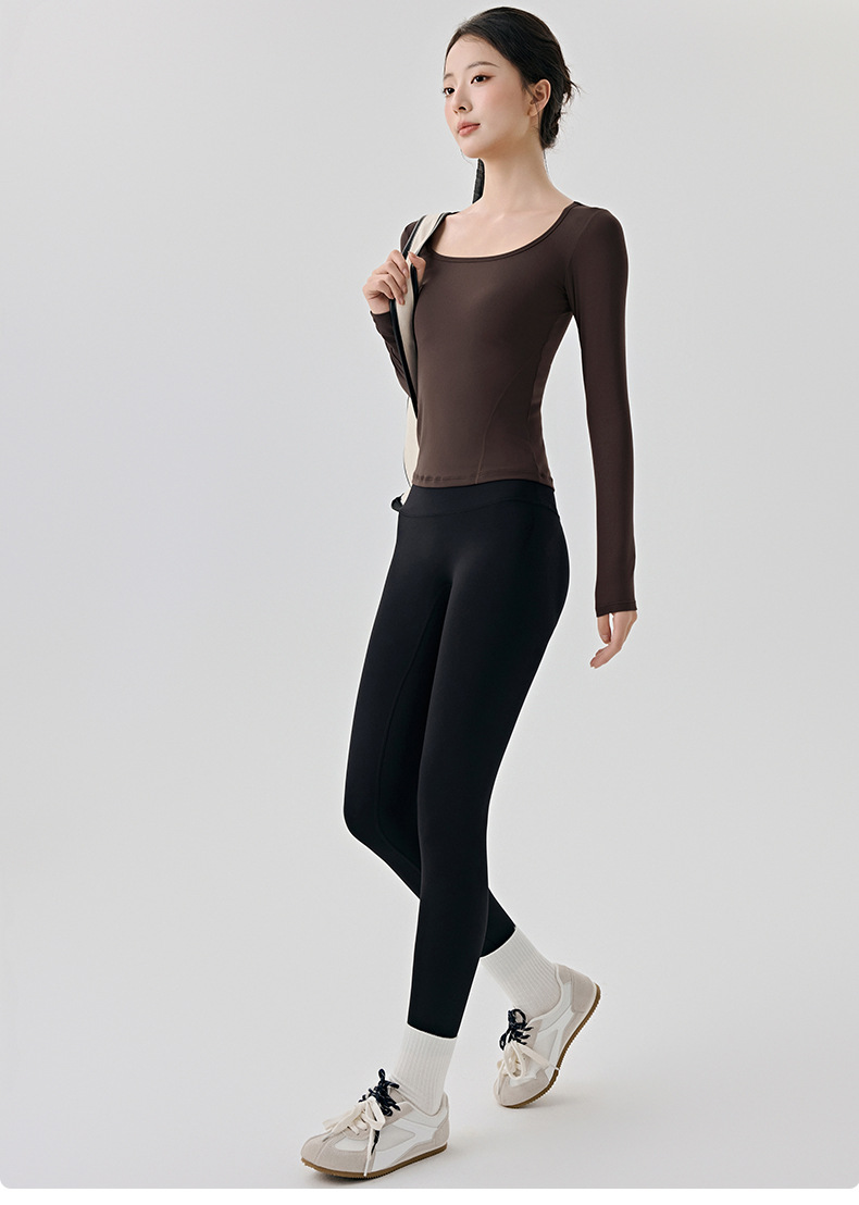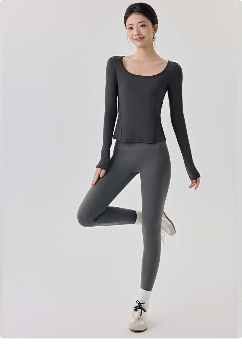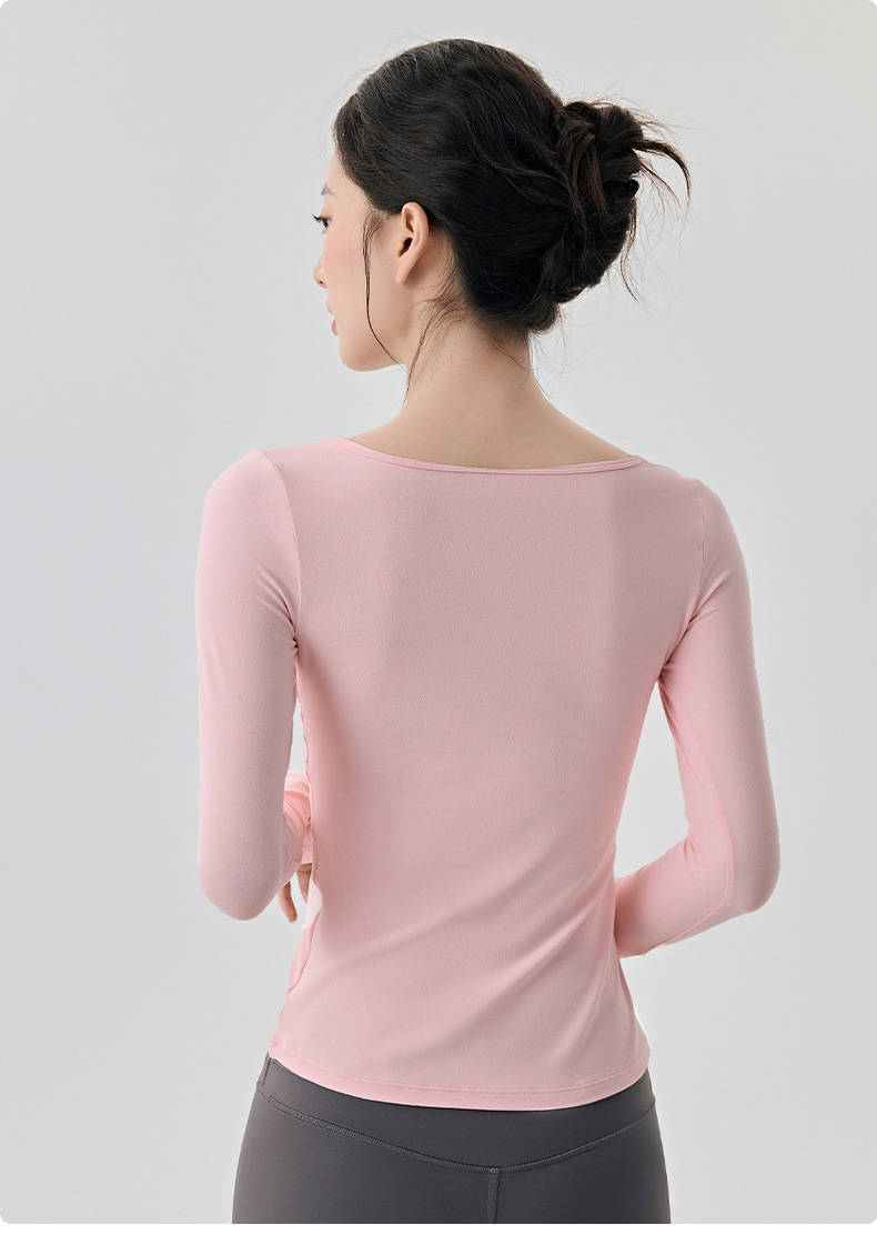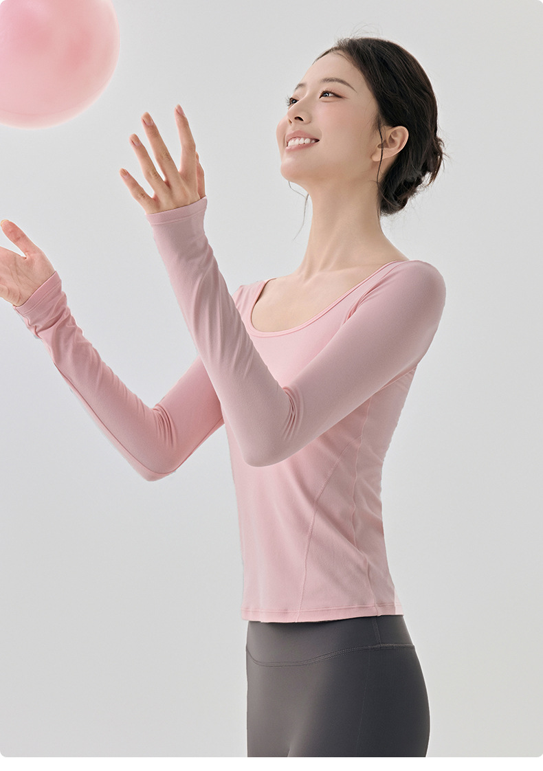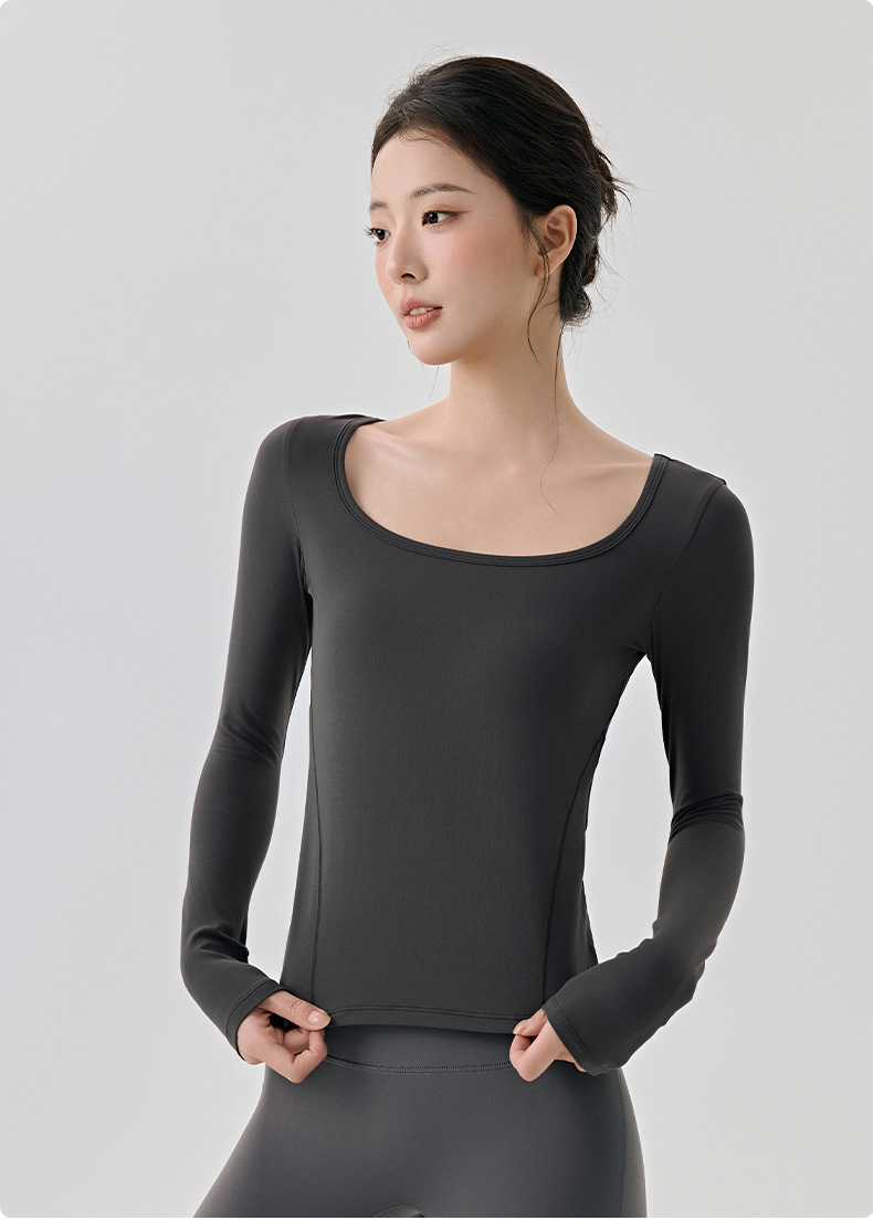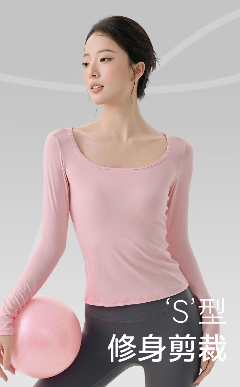 긴팔 요가복, 가볍고 넓은 네크라인, 슬림하고 우아한 여성용 상의, 고급 필라테스 스포츠 하의 셔츠