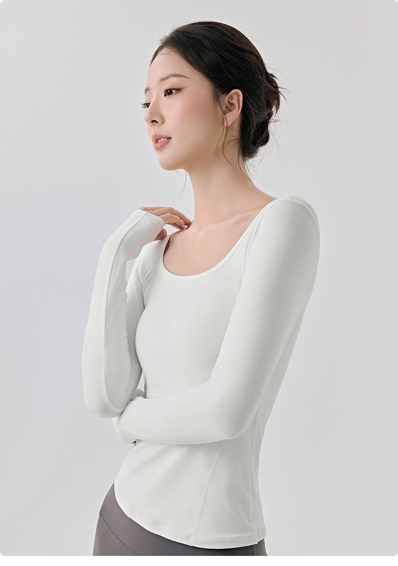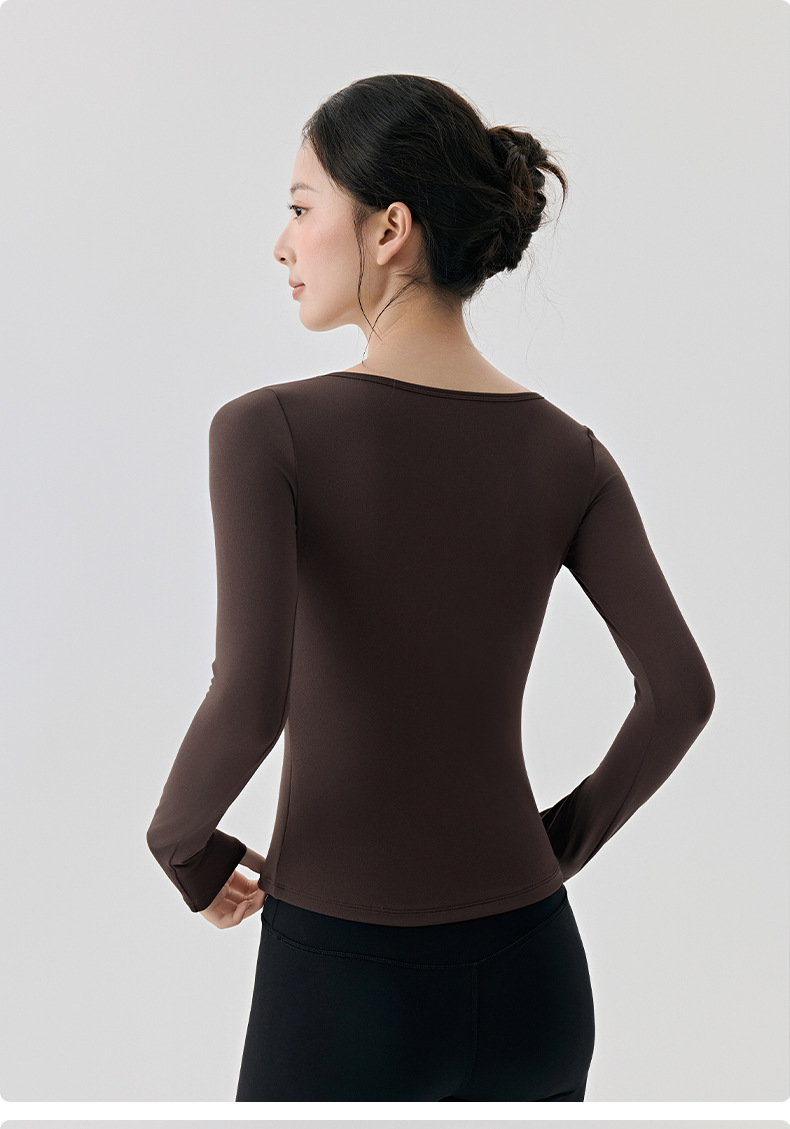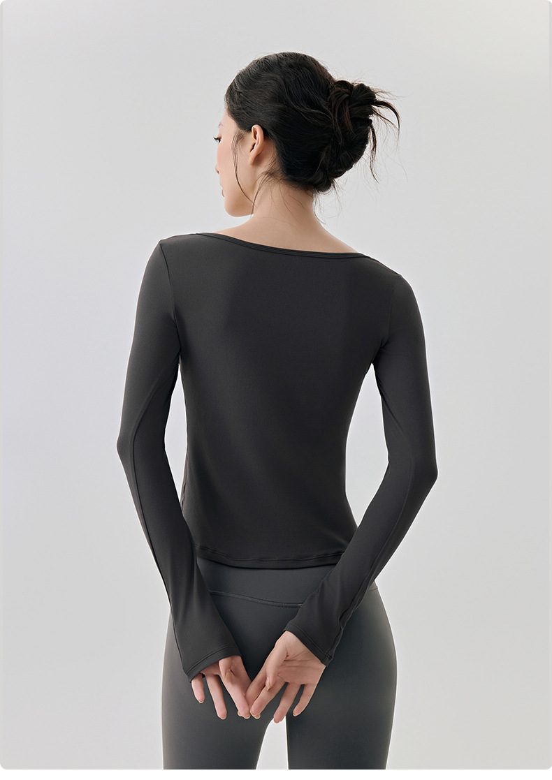 긴팔 요가복, 가볍고 넓은 네크라인, 슬림하고 우아한 여성용 상의, 고급 필라테스 스포츠 하의 셔츠스토어 가기