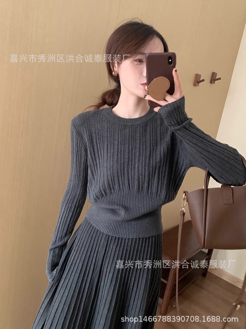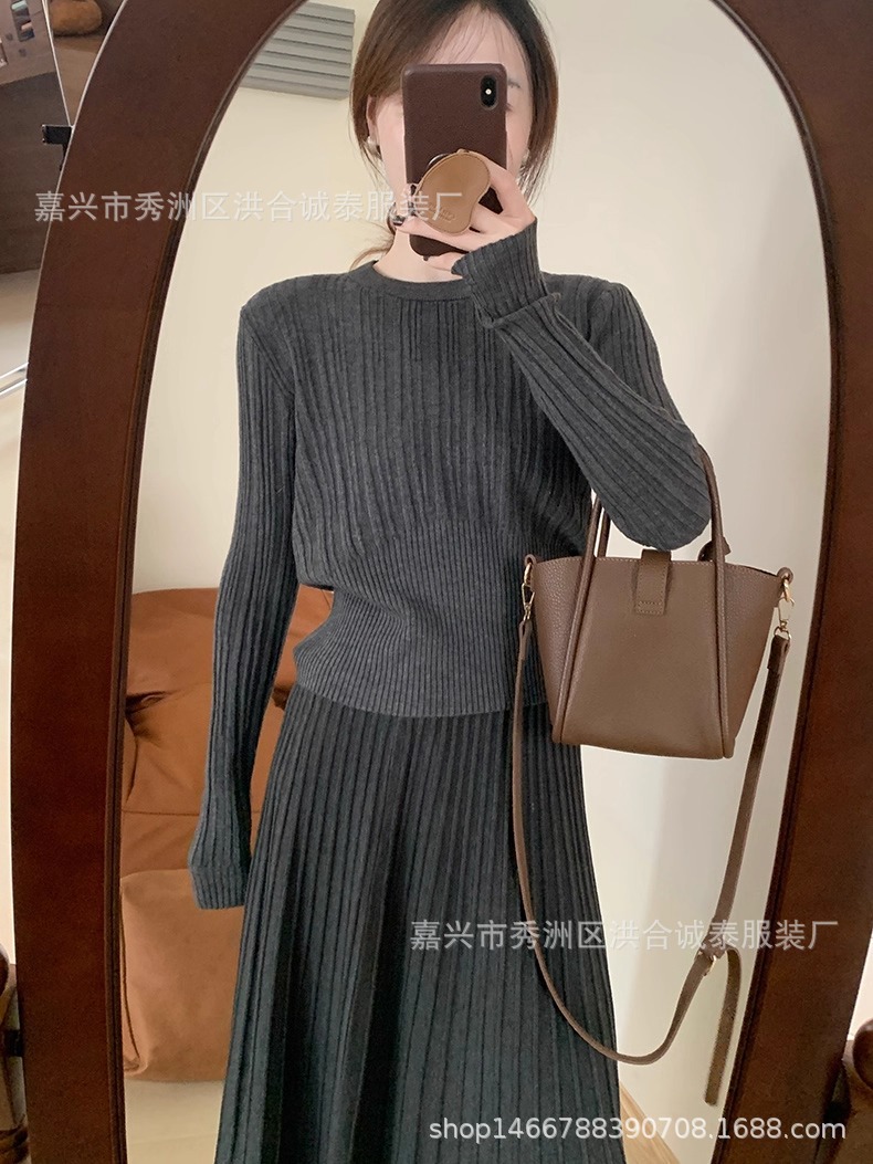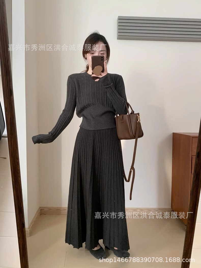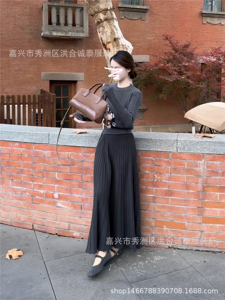 프랑스 고급 스웨터 여성 니트 스커트 캐주얼 투피스 세트 2025 가을 겨울 새로운 기질 롱 스커트 슈트스토어 가기
