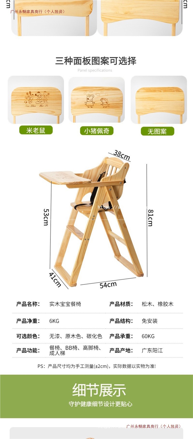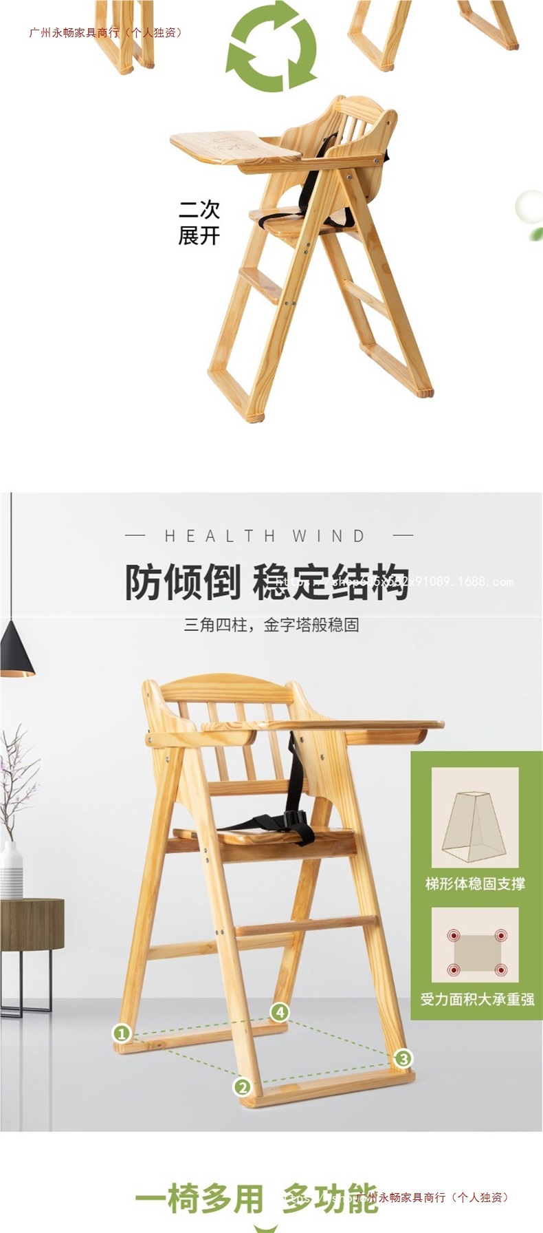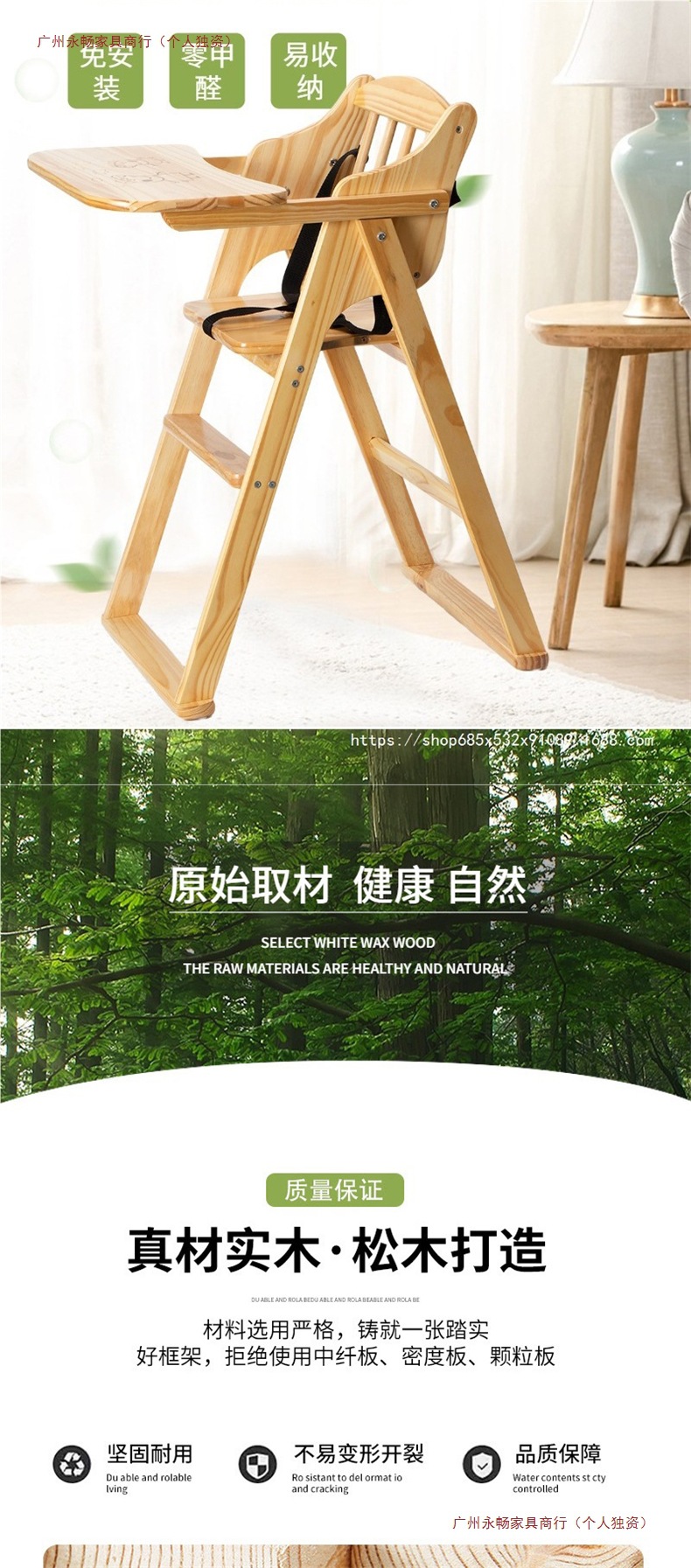 레스토랑 아기 식탁 의자 단단한 나무 어린이 식탁과 의자 홈 호텔 레스토랑 상업용 접이식 BB 식탁 의자 안정적스토어 가기