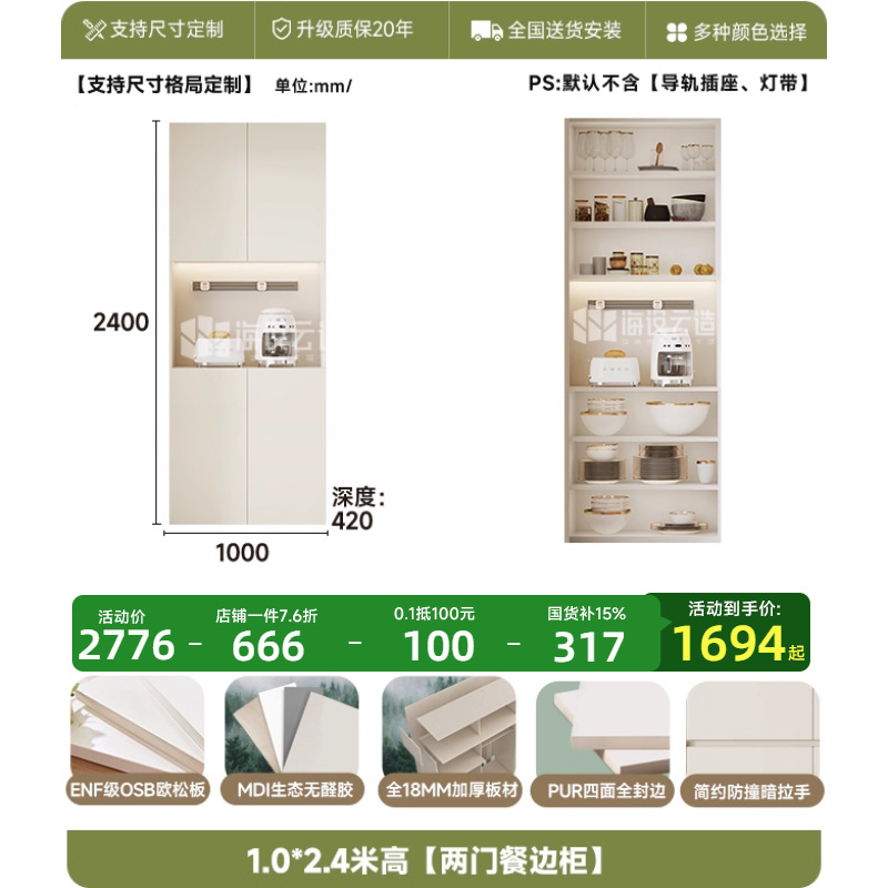 • 0.8* 2.4m 높이 [2도어 찬장]-ENF 레벨