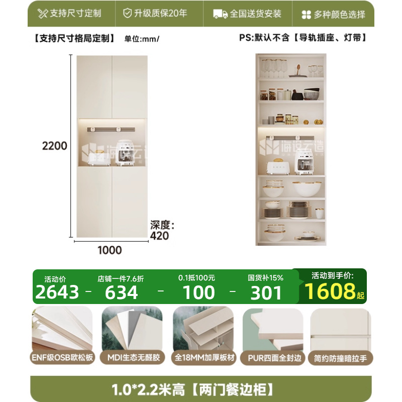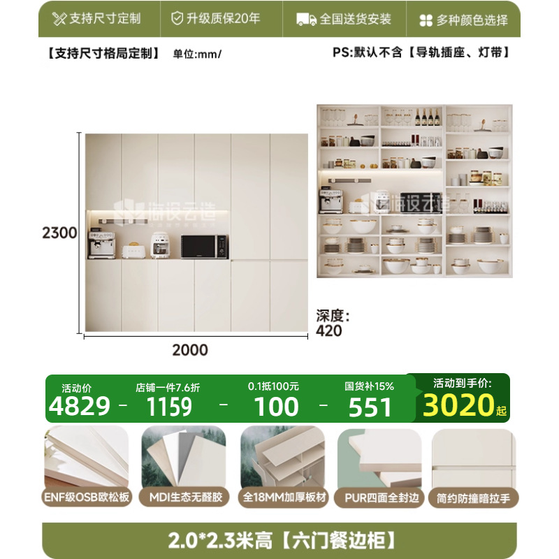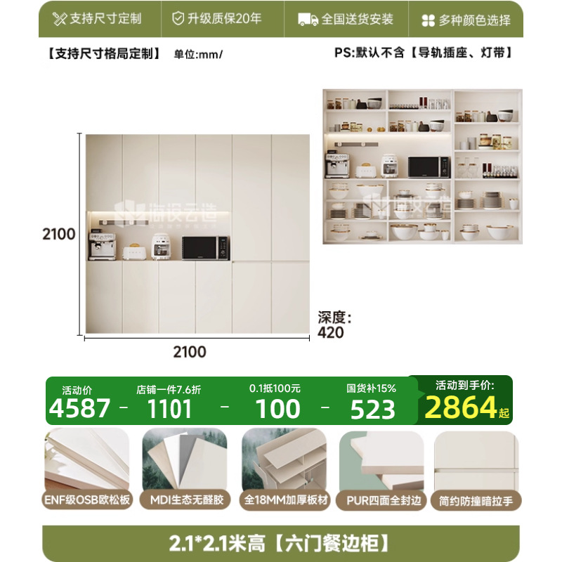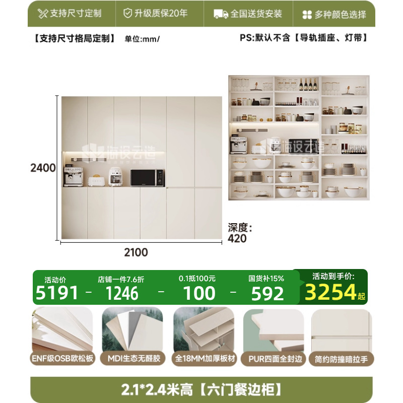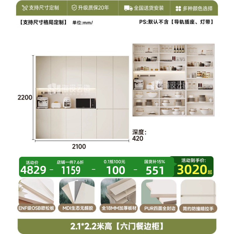 • 2.2* 2.0m 높이 [6도어 찬장]-ENF 레벨