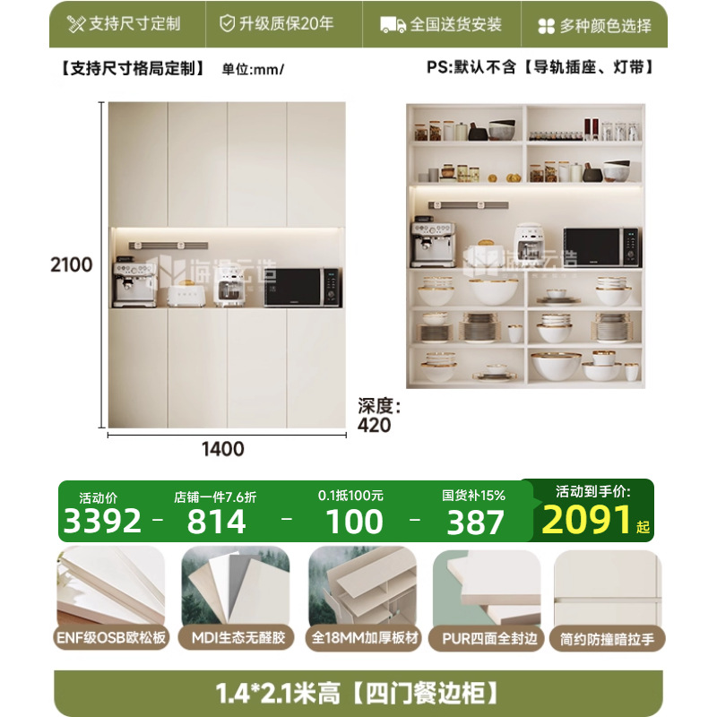 • 1.4* 2.0m 높이 [4도어 찬장]-ENF 레벨