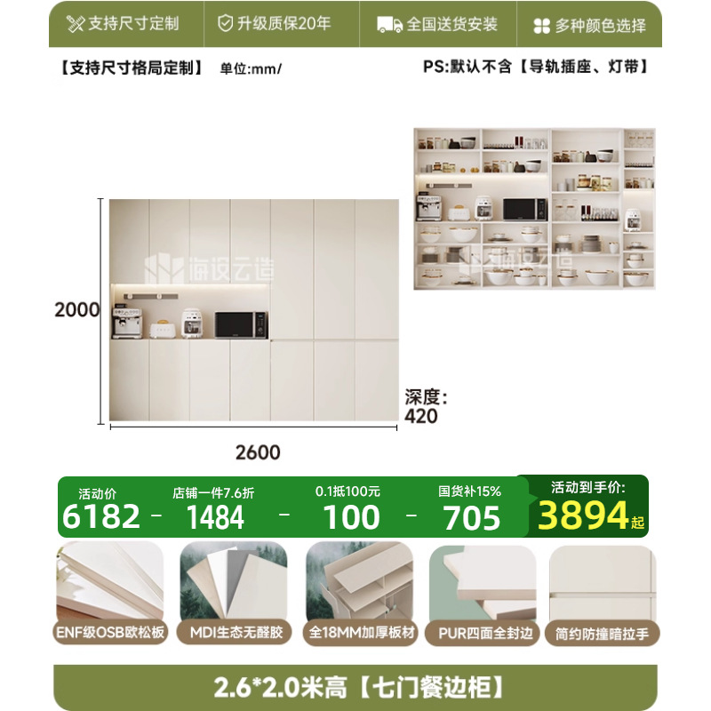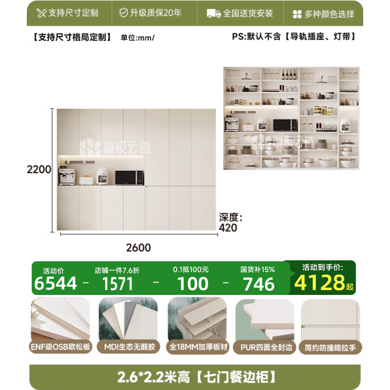 • 2.6m 폭 * 2.0m 높이 [7도어 찬장] - ENF 등급