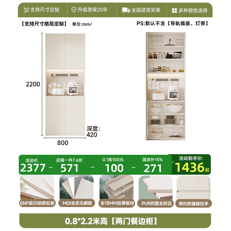 • 0.8* 2.2m 높이 [2도어 찬장]-ENF 레벨